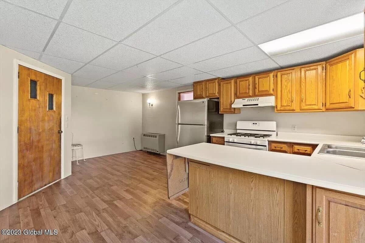 Inside the home, you’ll find a flexible floor plan that caters to modern living, with features such as natural gas heat and Verizon Fios Internet connectivity ensuring comfort and convenience year-round.