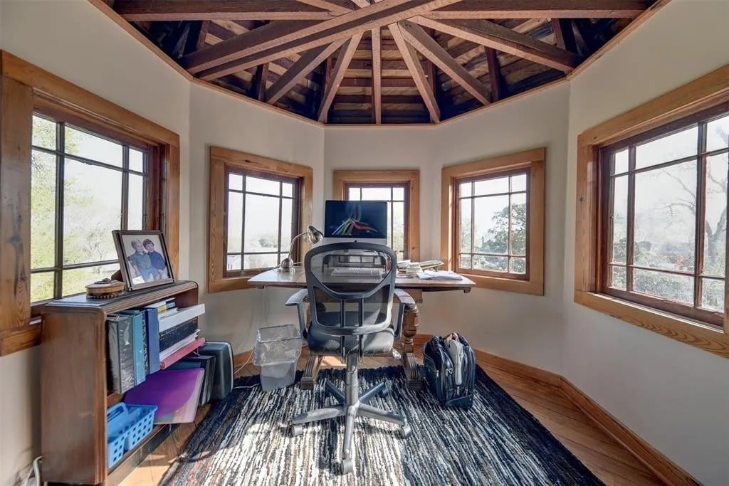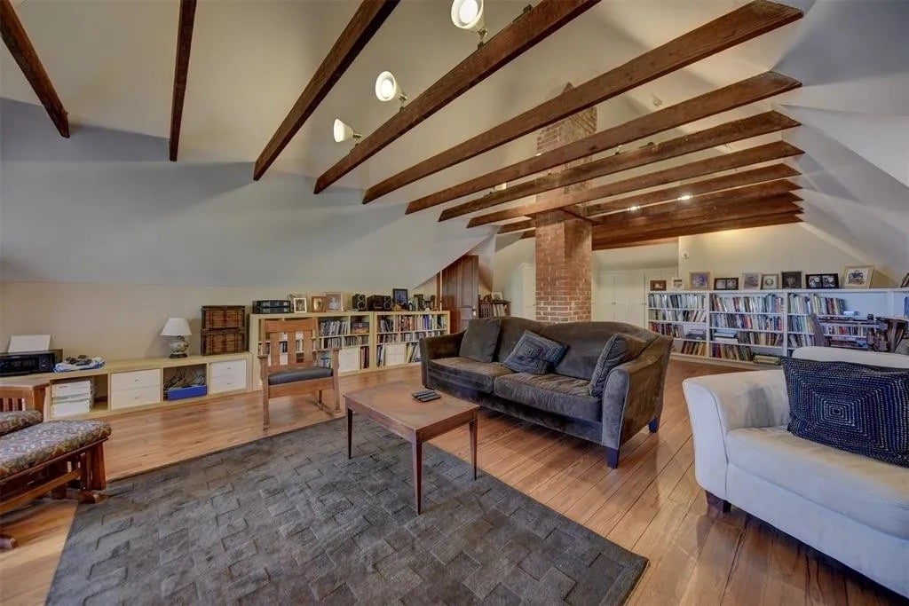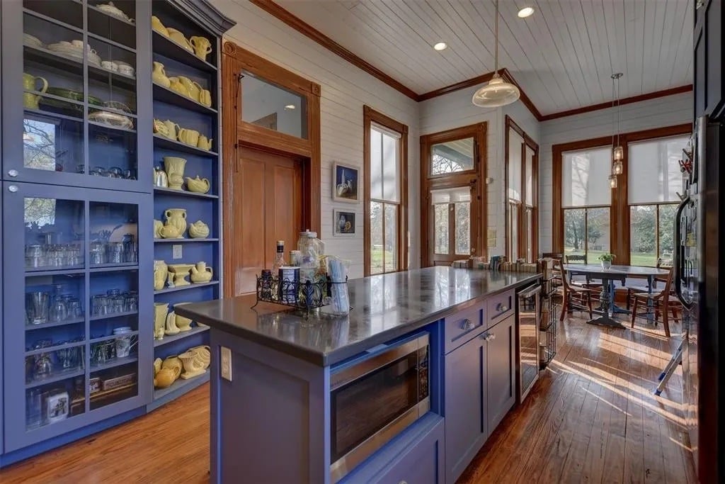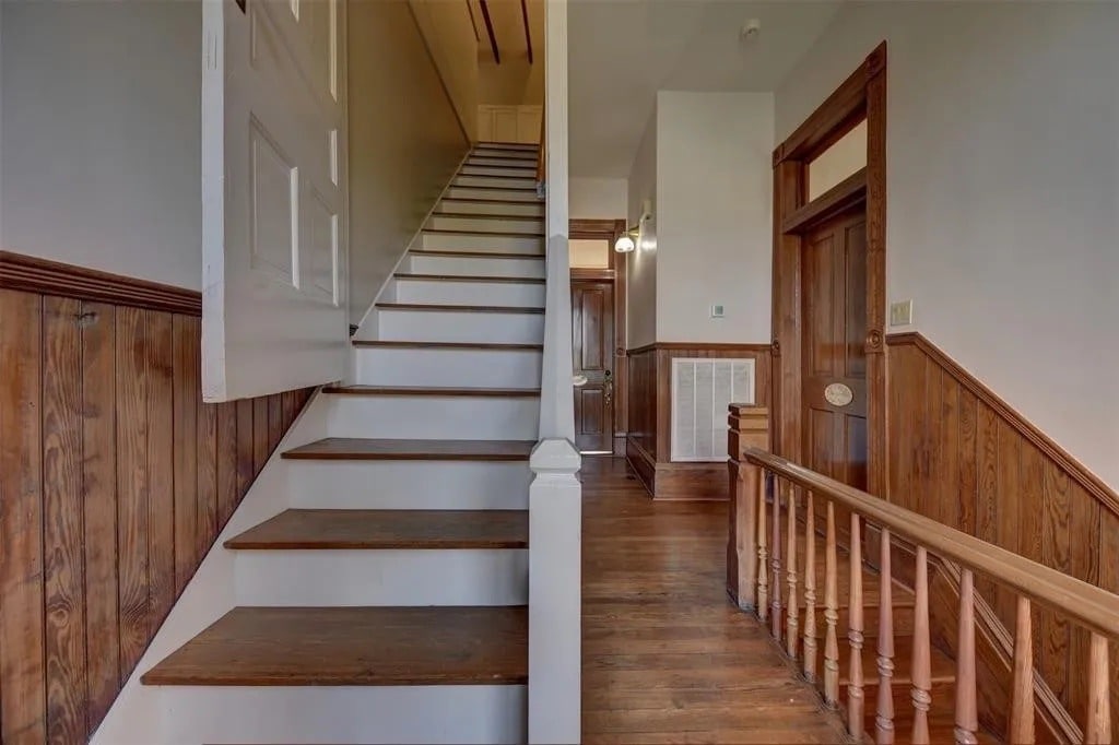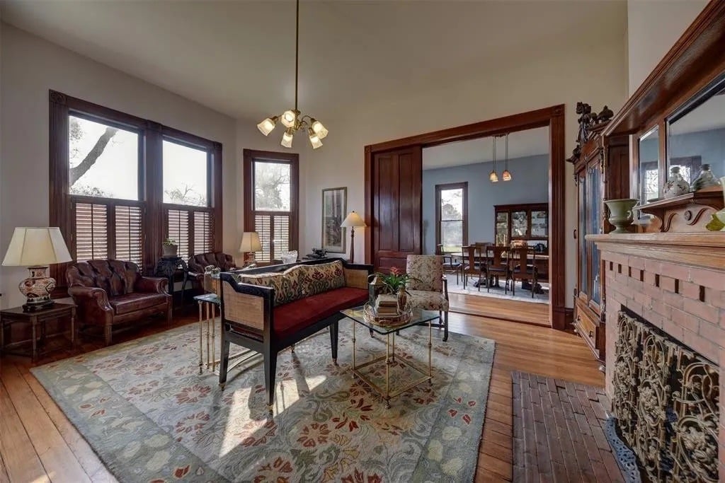 Although the house has been enhanced, it still has original features, such as hardwood floors, wainscoting, lofty ceilings, and wood-burning fireplaces, which imbue the home with timeless allure.