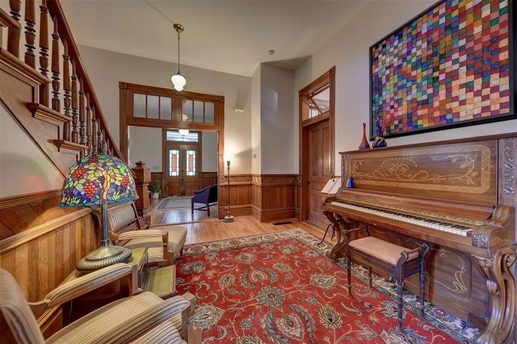 A professional paint job in 2016 revitalized its exterior and interiors, while the availability of antique furniture, some original to the house, further enhanced its historic appeal.