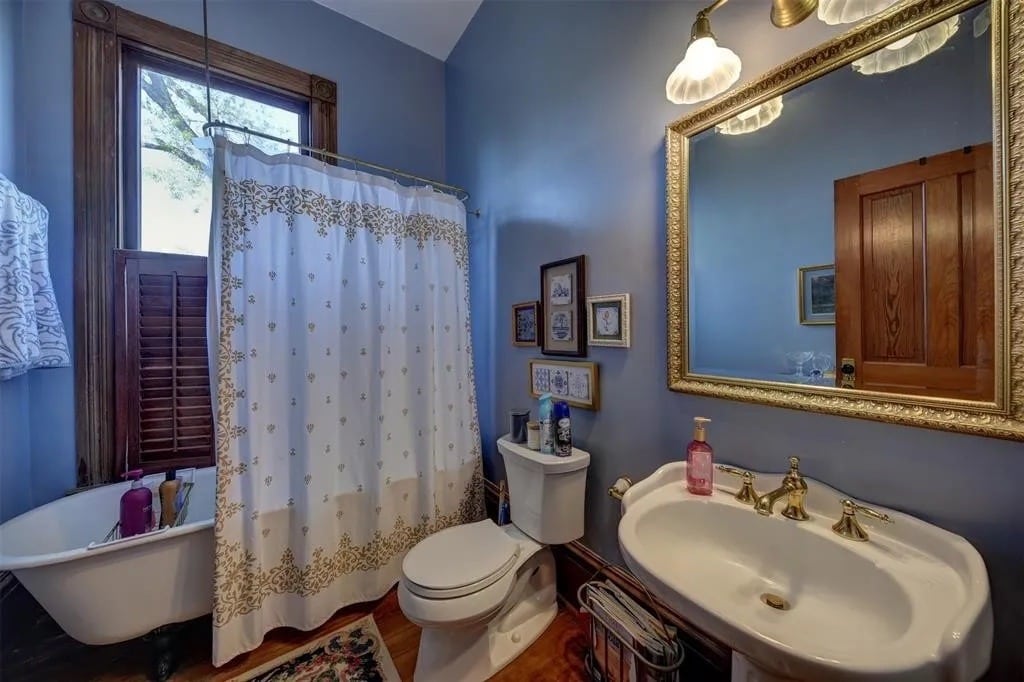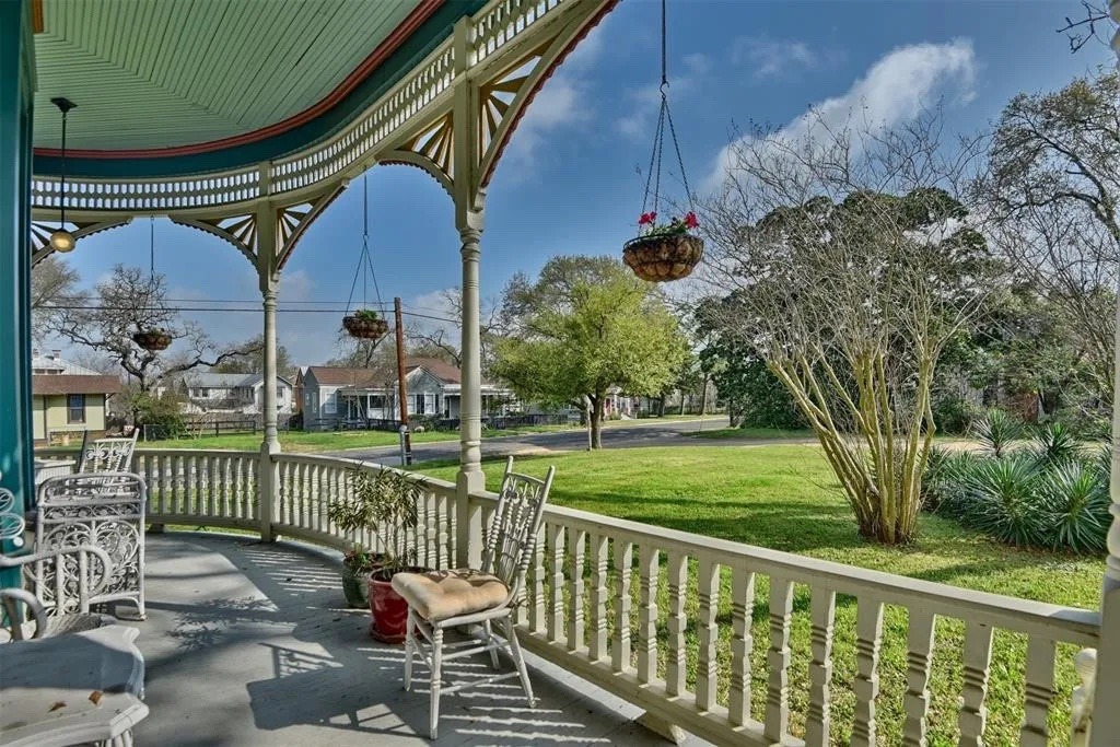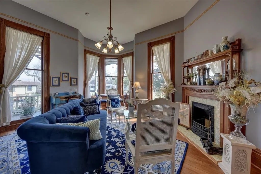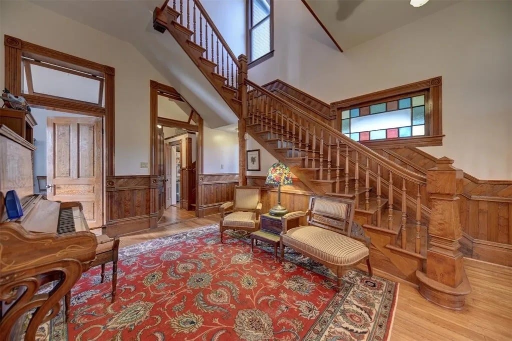 The house is a captivating Victorian gem that seamlessly blends Queen Anne and Eastlake styles with modern comforts.