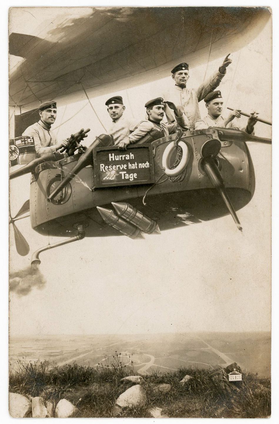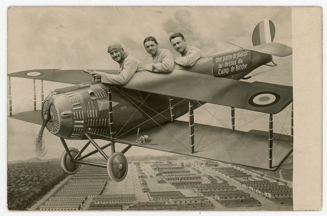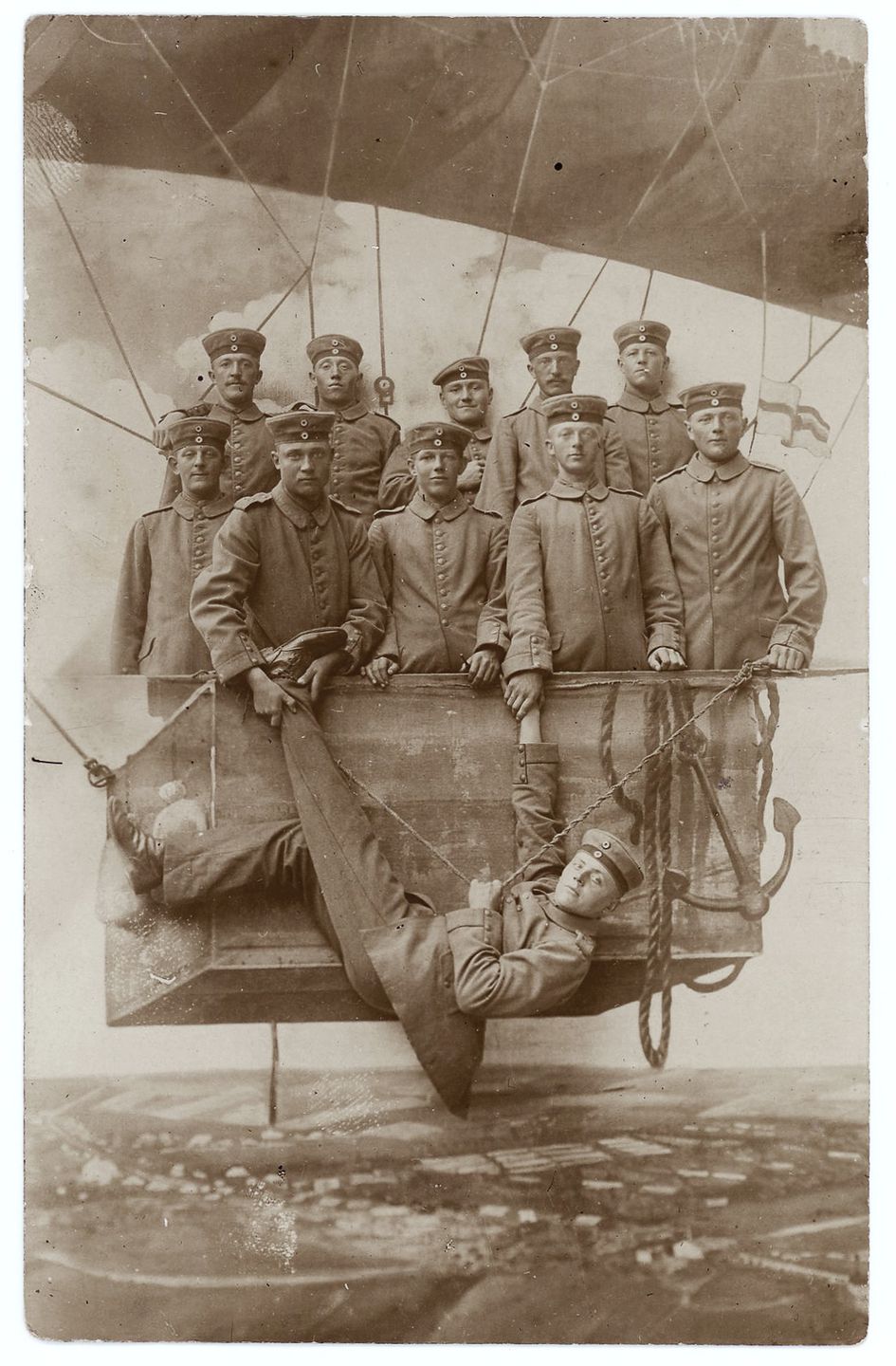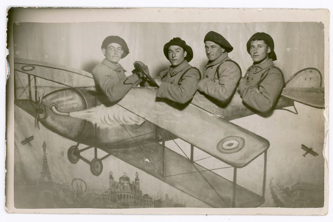 In these photos, soldiers posed with everything from faux airplanes to tanks and vintage cars—props provided by photo studios to create memorable keepsakes. Originally, these portraits were souvenirs for servicemen to send to loved ones back home, capturing both their courage and a rare glimpse of playfulness against the backdrop of war.