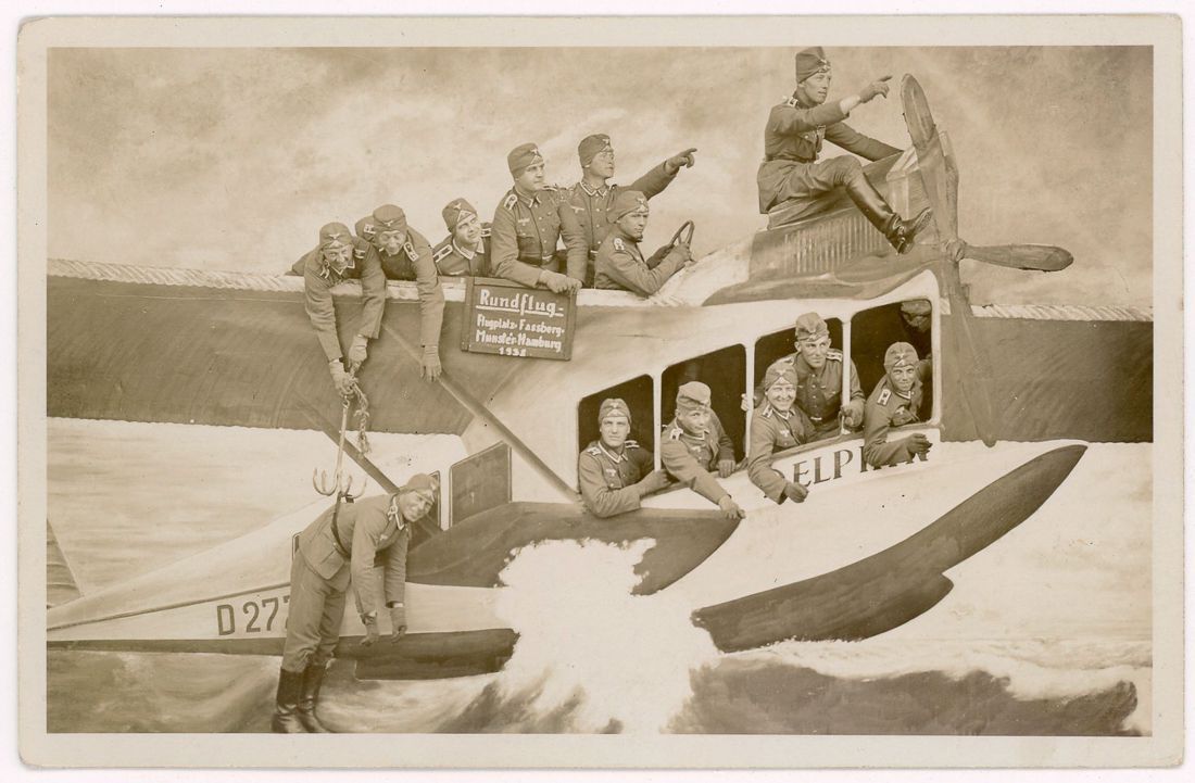 Christopher B. Steiner, a professor at Connecticut College, assembled a fascinating collection of military portraits that reveal a different side of soldiers from the World Wars. These snapshots capture moments of levity, as soldiers strike goofy poses with fake military props.