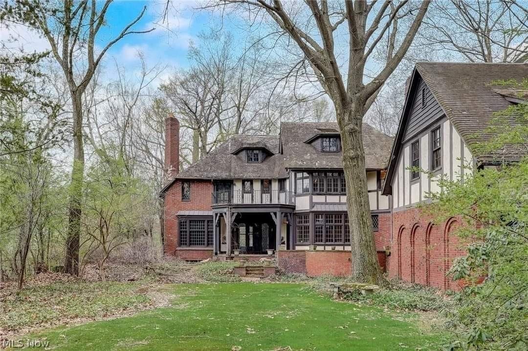 The carved ornamental detail, decorative paneling, and wrought iron balconies add to the charm and character of this Tudor masterpiece.