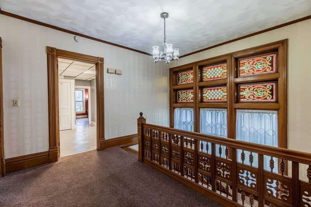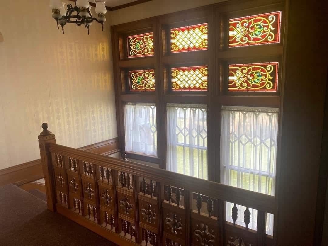 Up the grand staircase, you’ll pass some of the most beautiful windows this agent has ever seen.