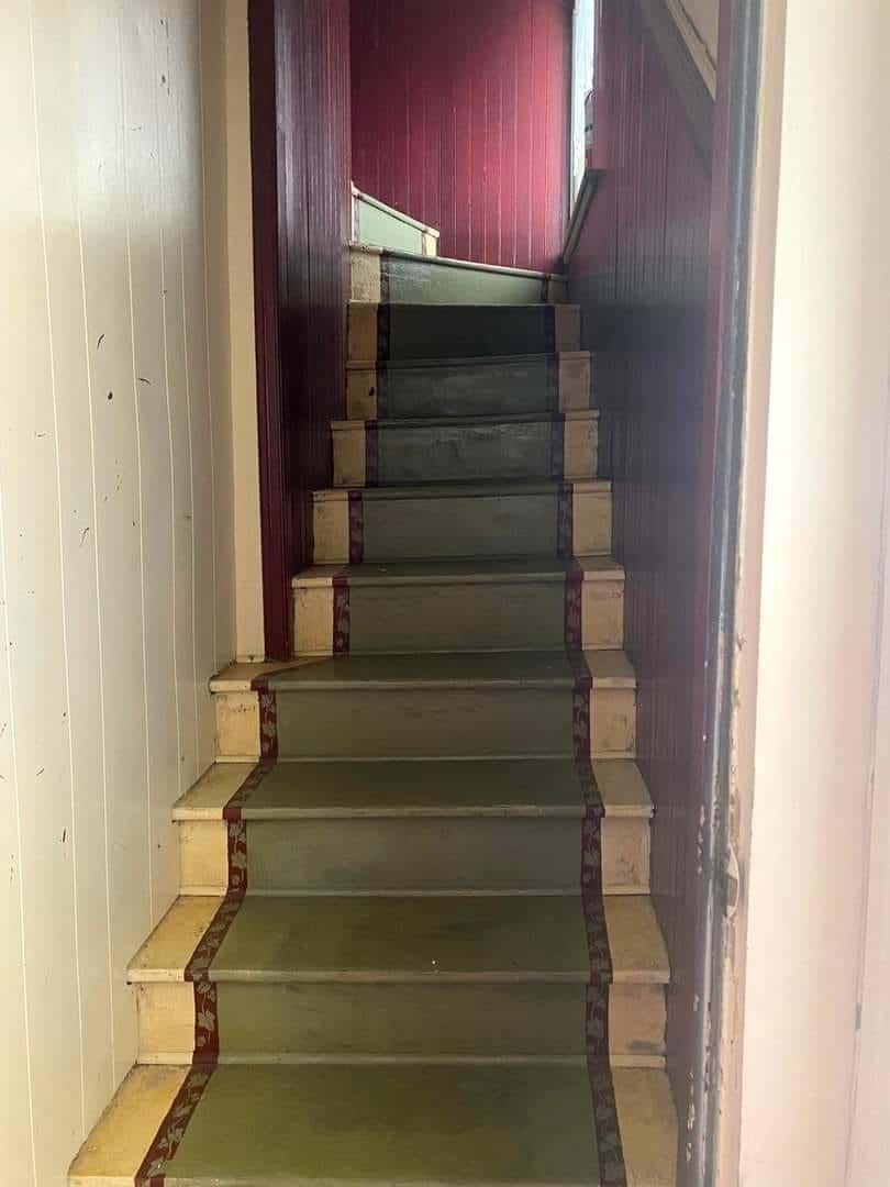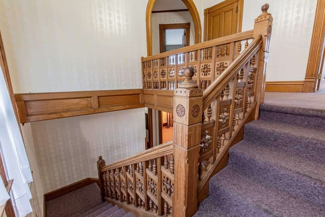 The gorgeous staircase, in beautiful shape, is an easy climb and adds to the home’s charm.