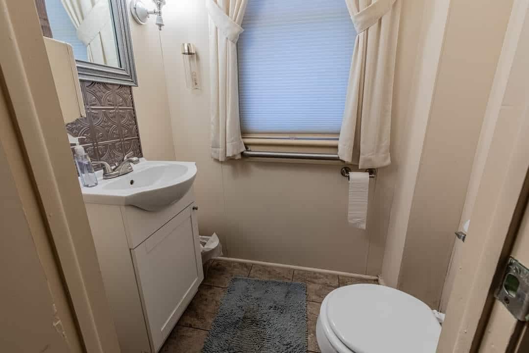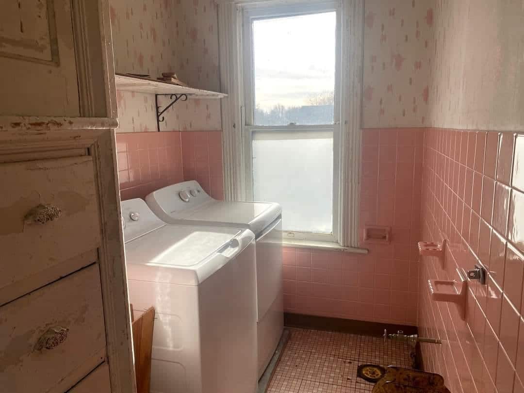 The master bedroom used to have its own bath, but it has been converted into a laundry room. It would take very little effort to revert it back to a bathroom if desired.