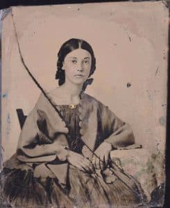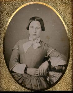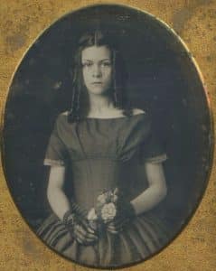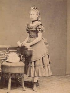 The dress the girl wore seems to belong to the 1840s – Modest Beginnings. She wore a dress with fitted bodices and full skirts. The skirt was gathered or pleated, falling to the ankle or floor length.