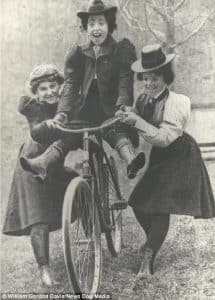 #16. Three teenage girls having fun with a bicycle