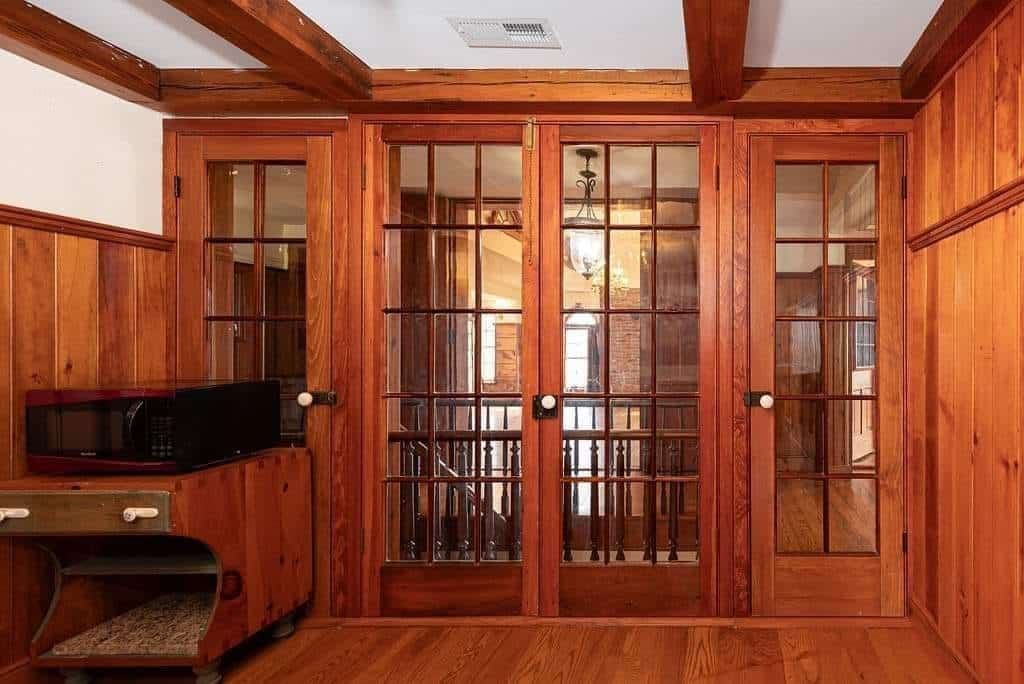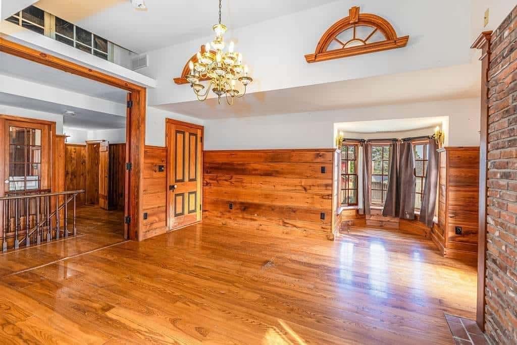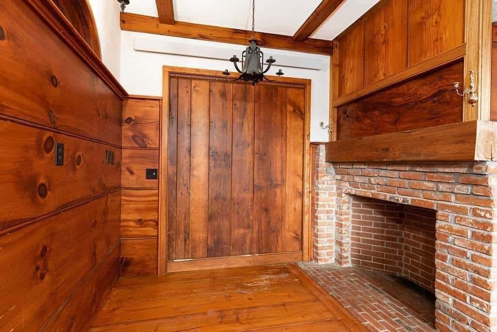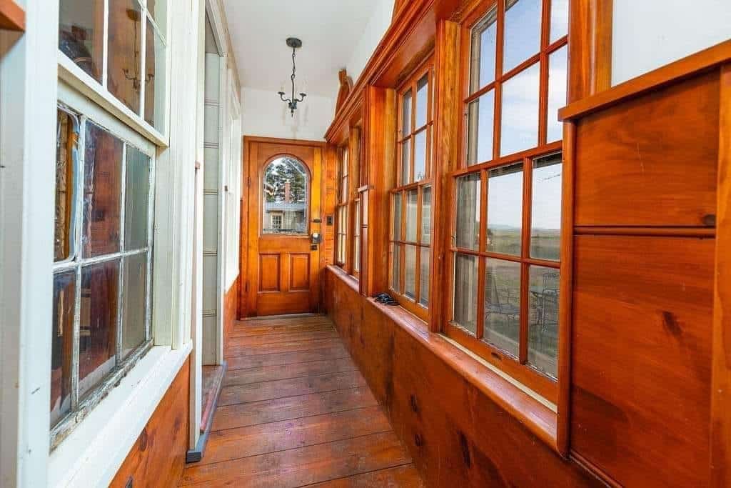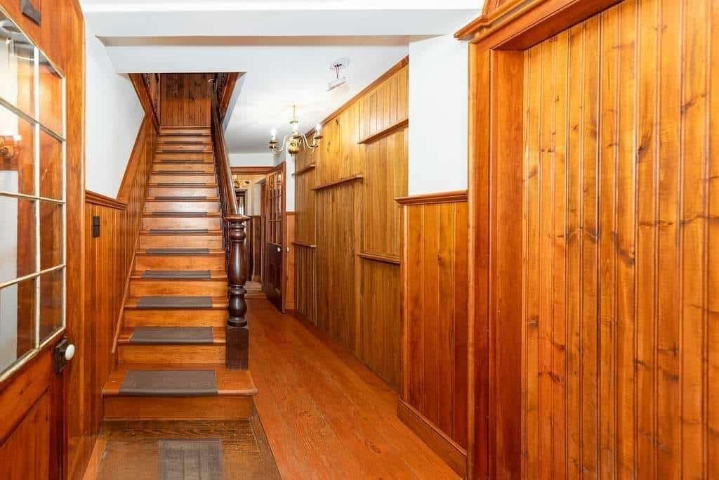 The interior boasts remarkable craftsmanship, including bath fixtures with original manufacturer stamps and many intricately crafted wooden toilet tanks, showcasing the skills of a former owner who was a talented millwright.