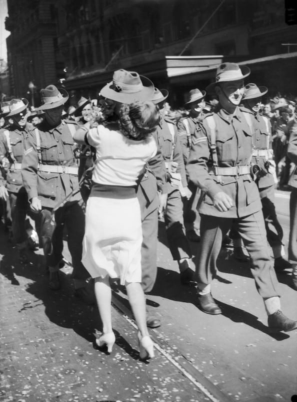 “A Kiss Interrupts the March,” taken in 1943, is an iconic World War II photograph capturing a soldier, a member of the 9th Australian Division, pausing during a march to kiss a woman, likely his sweetheart or wife.