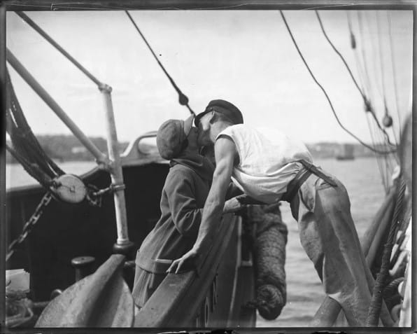 5. Man and woman kissed across 2 vessels, 1920-1939