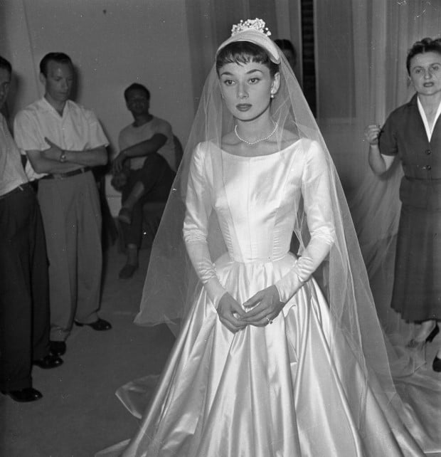 During the filming of “Roman Holiday” in 1953, Audrey Hepburn was engaged to English industrialist James Hanson. For her wedding, she asked the Fontana sisters, who also worked with Edith Head on her costumes for the movie, to design her dress.