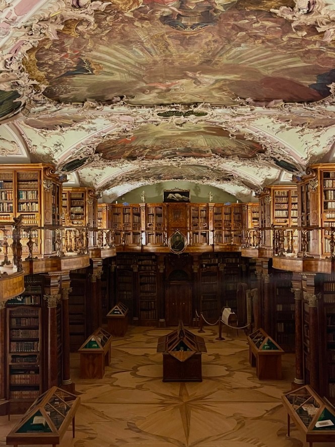 The current library hall, designed by Peter Thumb, was built in a stunning Rococo style between 1758 and 1767.