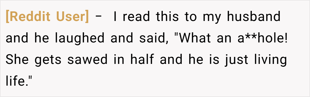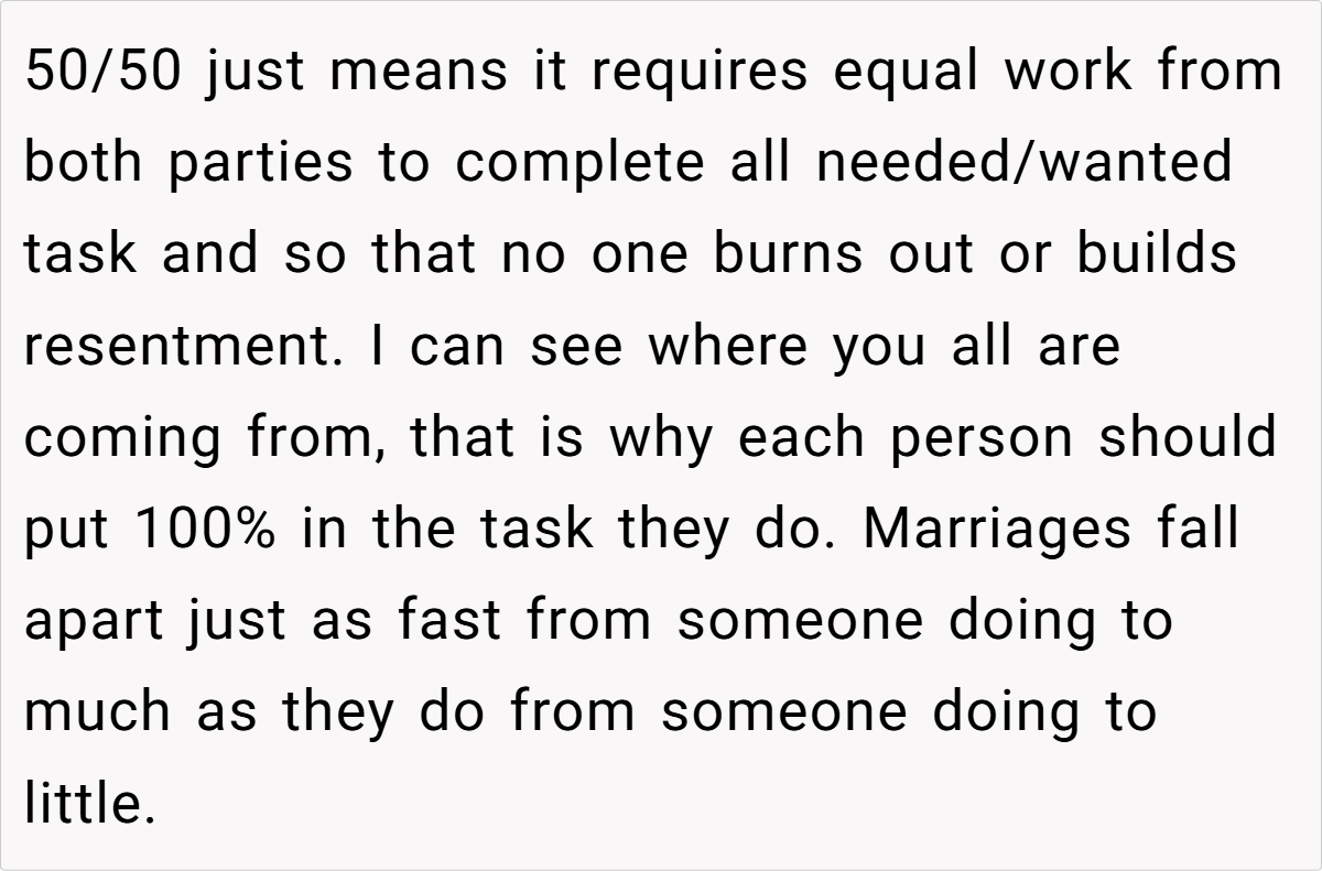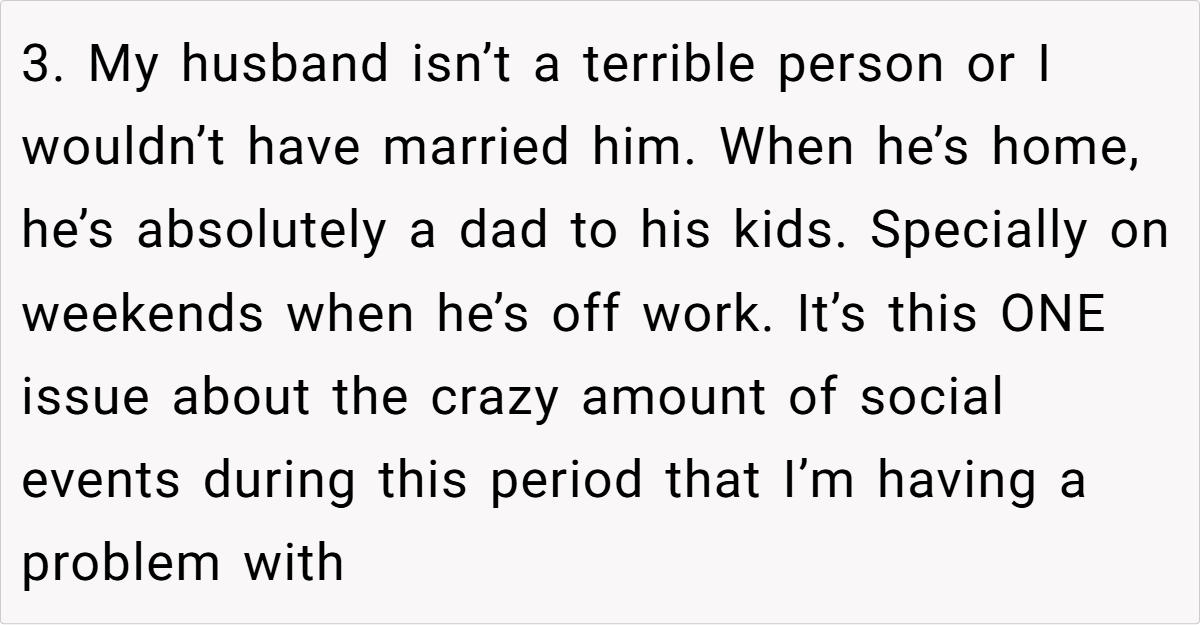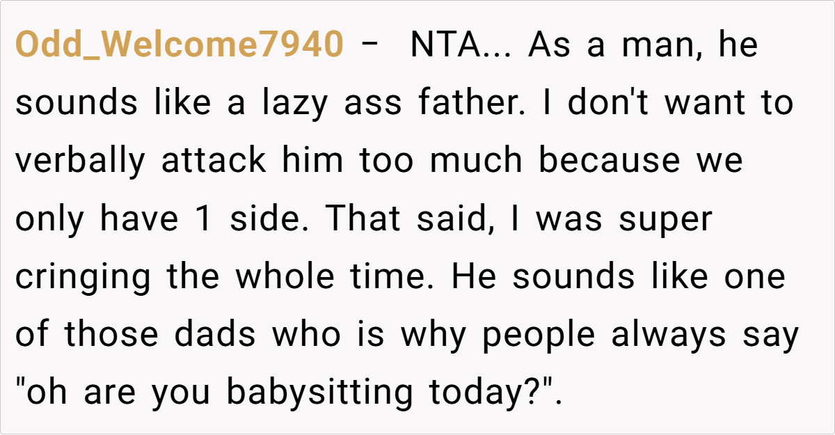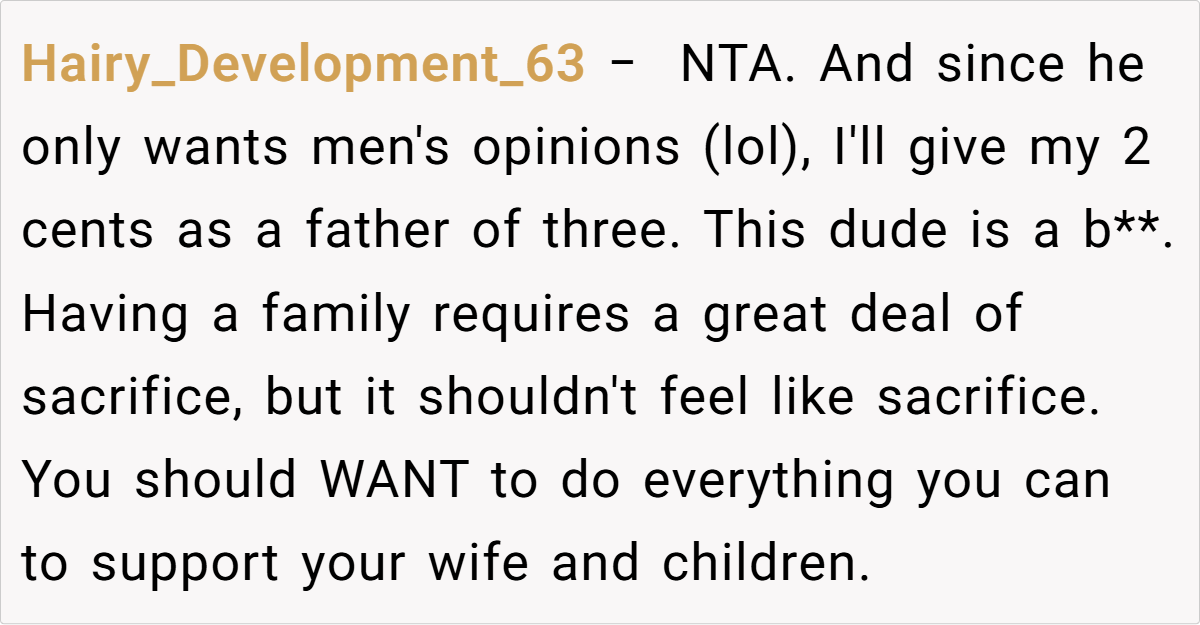 She further points out that even if the father believes he’s compensating by being home during the day, the real challenge is the nighttime when support is most needed. “It’s about quality of support, not just quantity of hours at home,” she notes. “When late nights leave your partner exhausted and irritable, the entire family feels the ripple effects.”