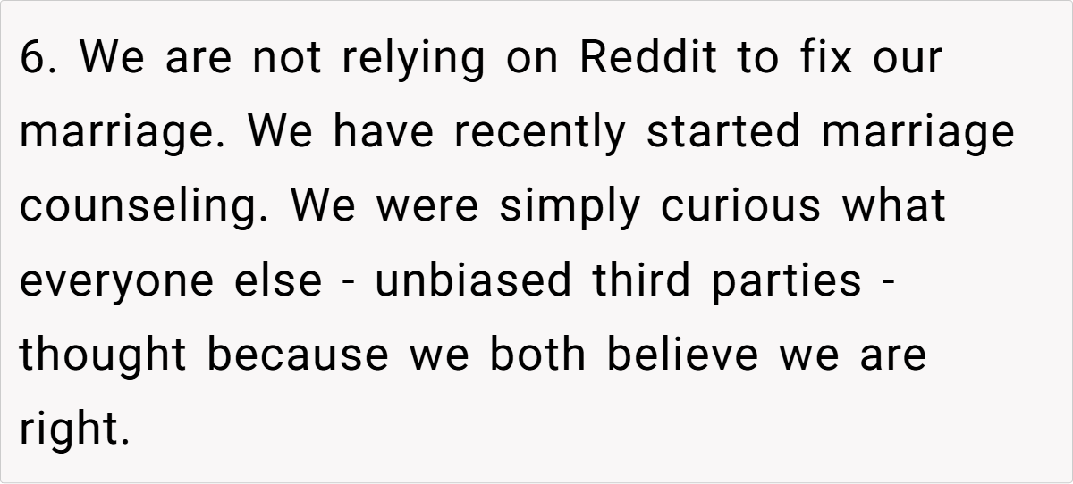AITA? Asking particularly for MEN’s opinions, as per the husband’s request?