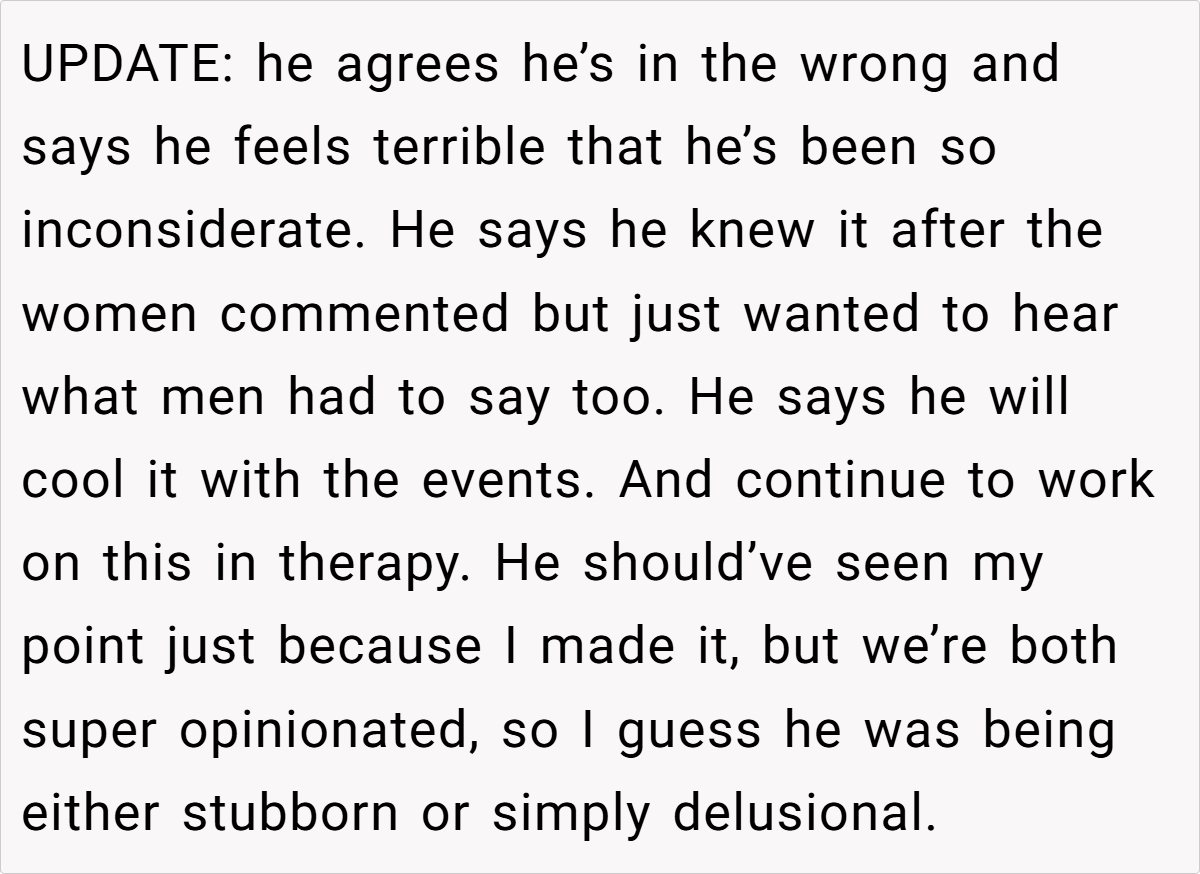 ‘AITA? Asking particularly for MEN’s opinions, as per the husband’s request?’