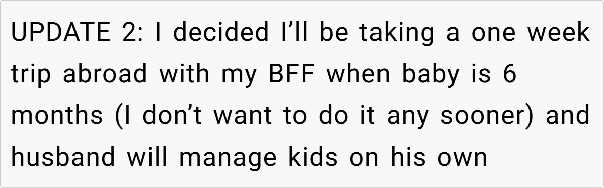 Ultimately, this postpartum predicament isn’t about restricting social outings altogether; it’s about ensuring that both partners contribute equally during one of the most demanding phases of parenthood. With a new baby and a toddler under two, the balance of responsibilities becomes critical—not only for recovery but for maintaining a healthy, supportive relationship.