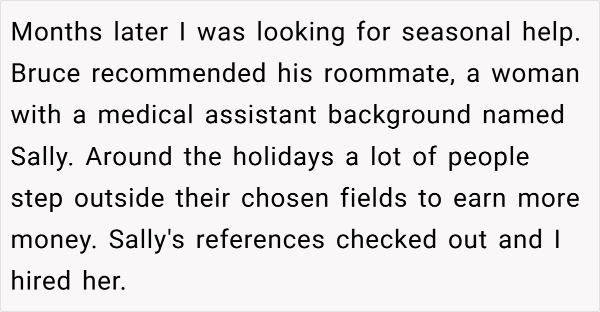 That’s exactly the situation our Original Poster (OP) found themselves in when they hired Bruce, a seemingly reliable employee, only to later bring his wife, Sally, into the mix. What started as a simple seasonal hire spiraled into an HR nightmare. Scroll down to check the story!