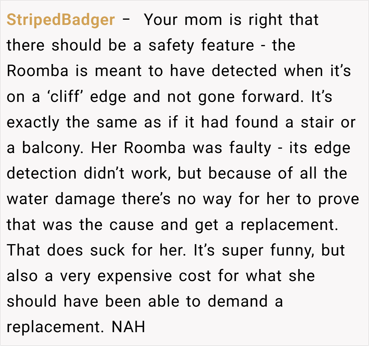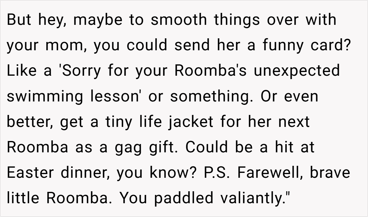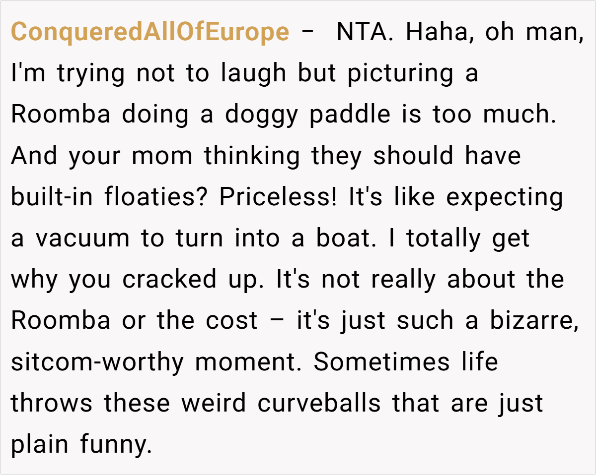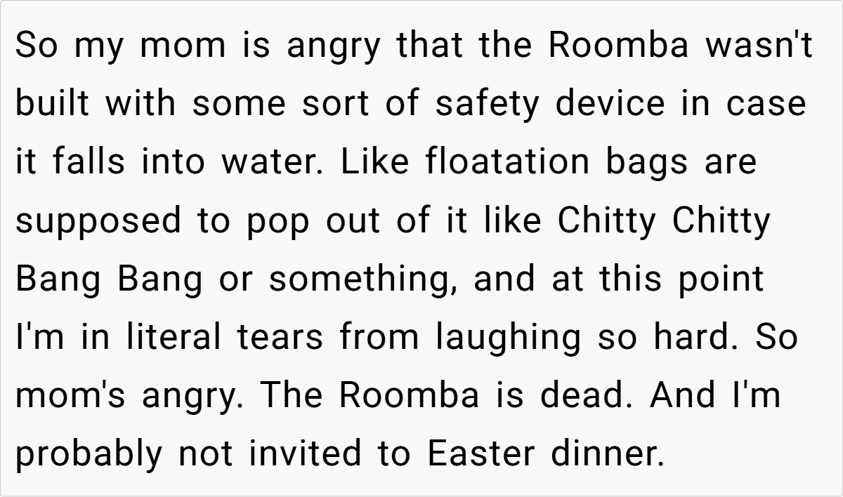 ‘AITA because I LMAO’d when my mom told me her Roomba fell into the pool?’