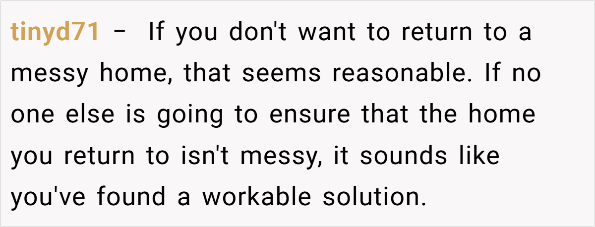 This story isn’t just about cleaning up a messy house—it’s a reflection of evolving family dynamics and the need for honest communication in relationships. Both partners must continuously negotiate their roles and expectations to prevent resentment from building over time.