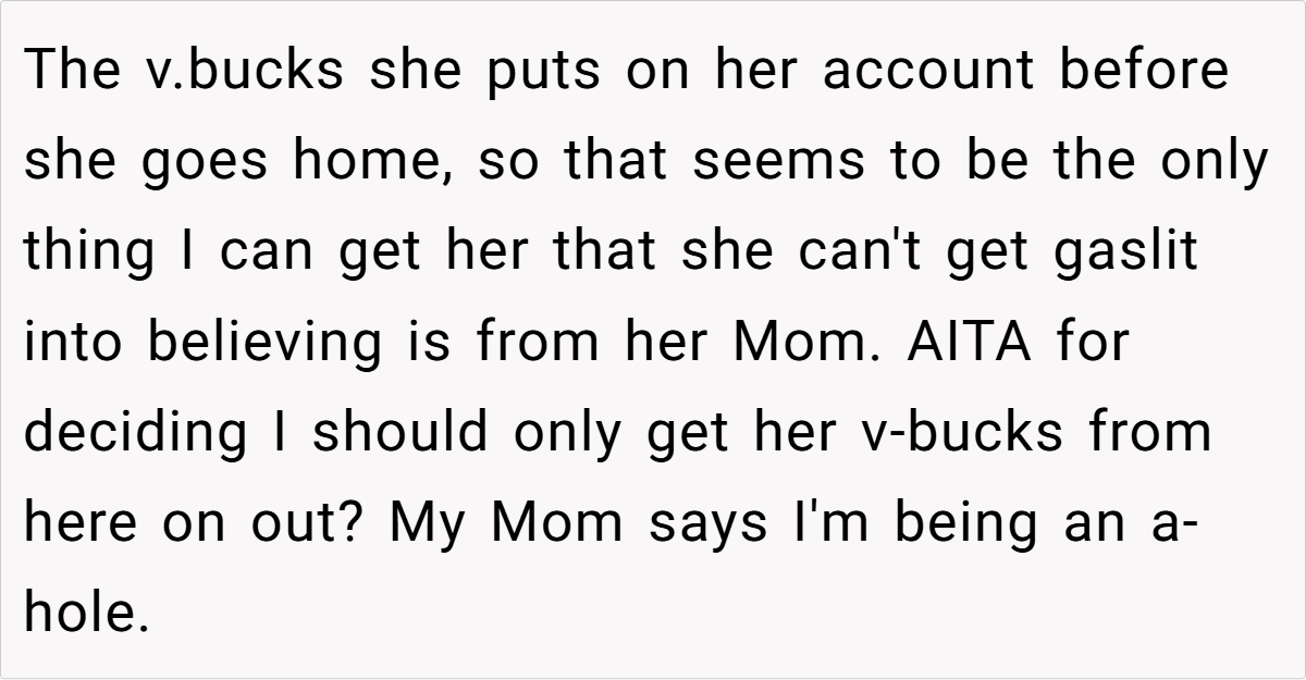 ‘AITA because I won’t buy her anything but v-bucks now?’