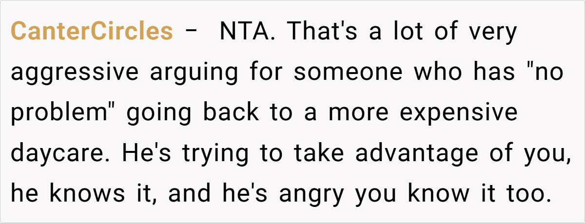 The tension escalated when a conversation about appropriate daycare fees turned into a battle of wills between siblings. One side argued for a discounted rate as a family favor, while the other demanded fair market value for professional services rendered. This incident highlights the complex interplay between familial love and business expectations—a scenario that many can relate to when personal relationships blur the lines of professional agreements.