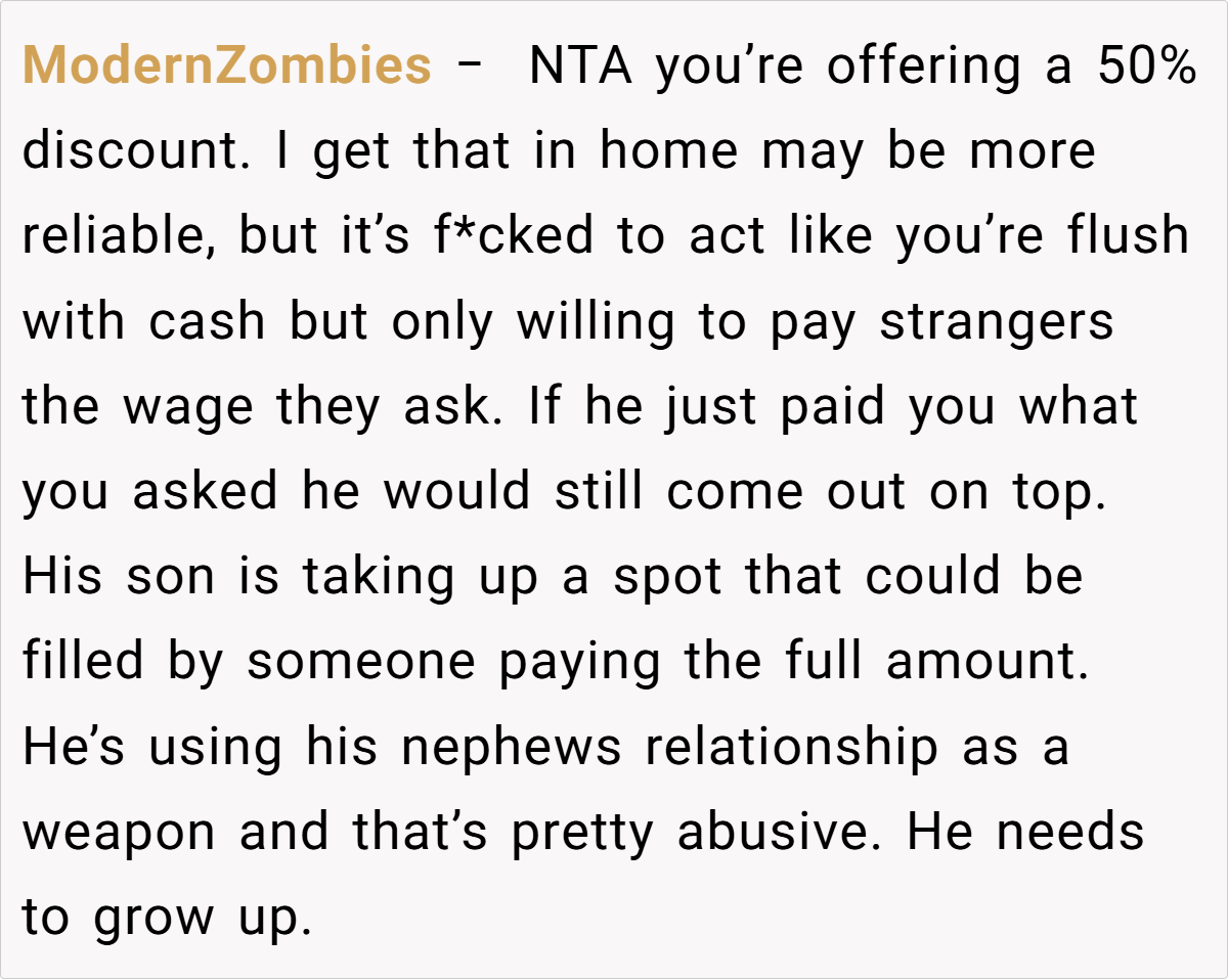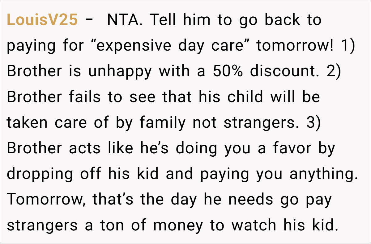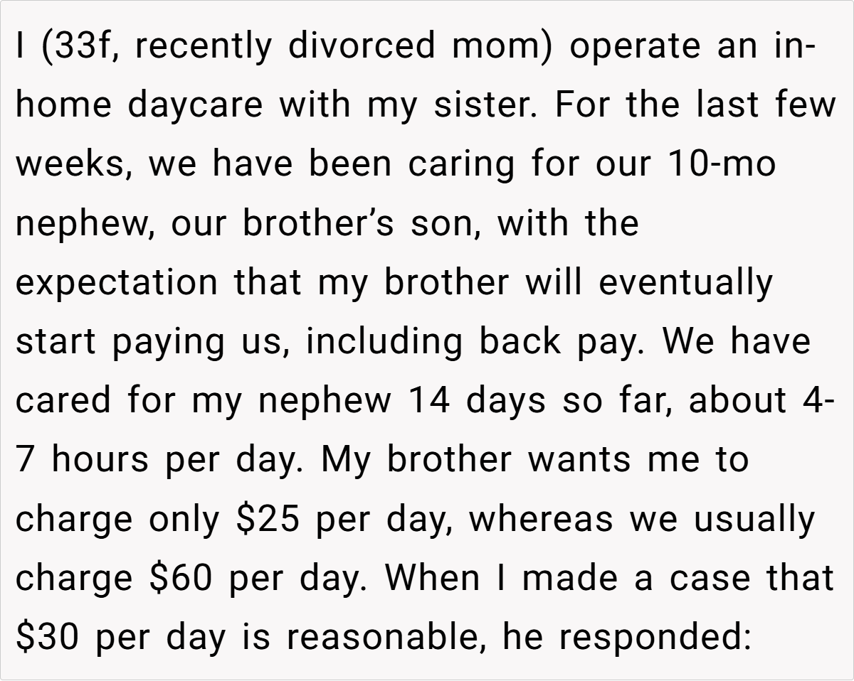 ‘AITA because I won’t give my brother daycare for $25/day?’