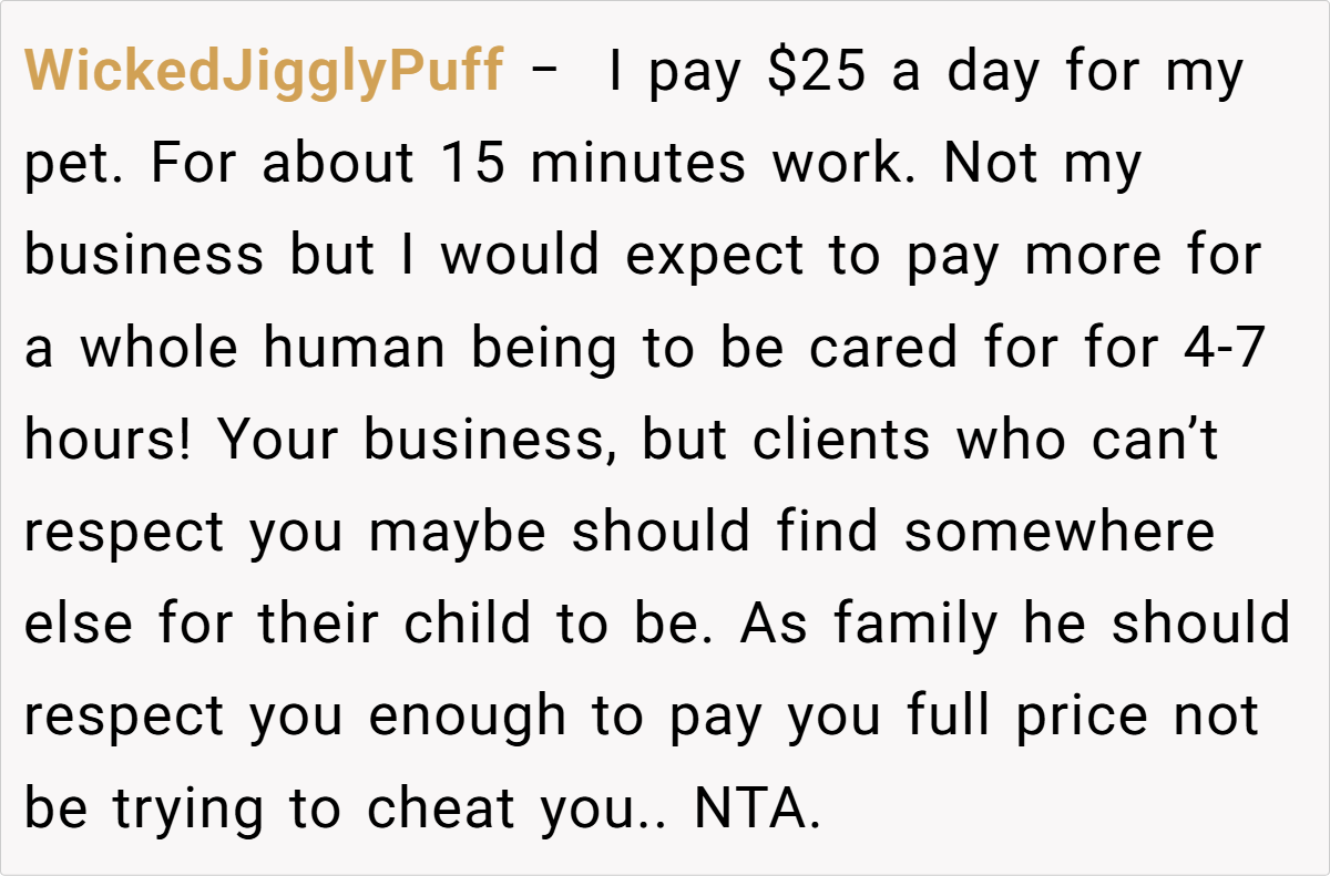 Navigating the blurred lines between family and business is never easy, especially when emotions run deep and long-standing relationships are at stake. In this case, the issue isn’t solely about the daycare fee—it’s about the expectations of fair treatment and mutual respect in a family setting.