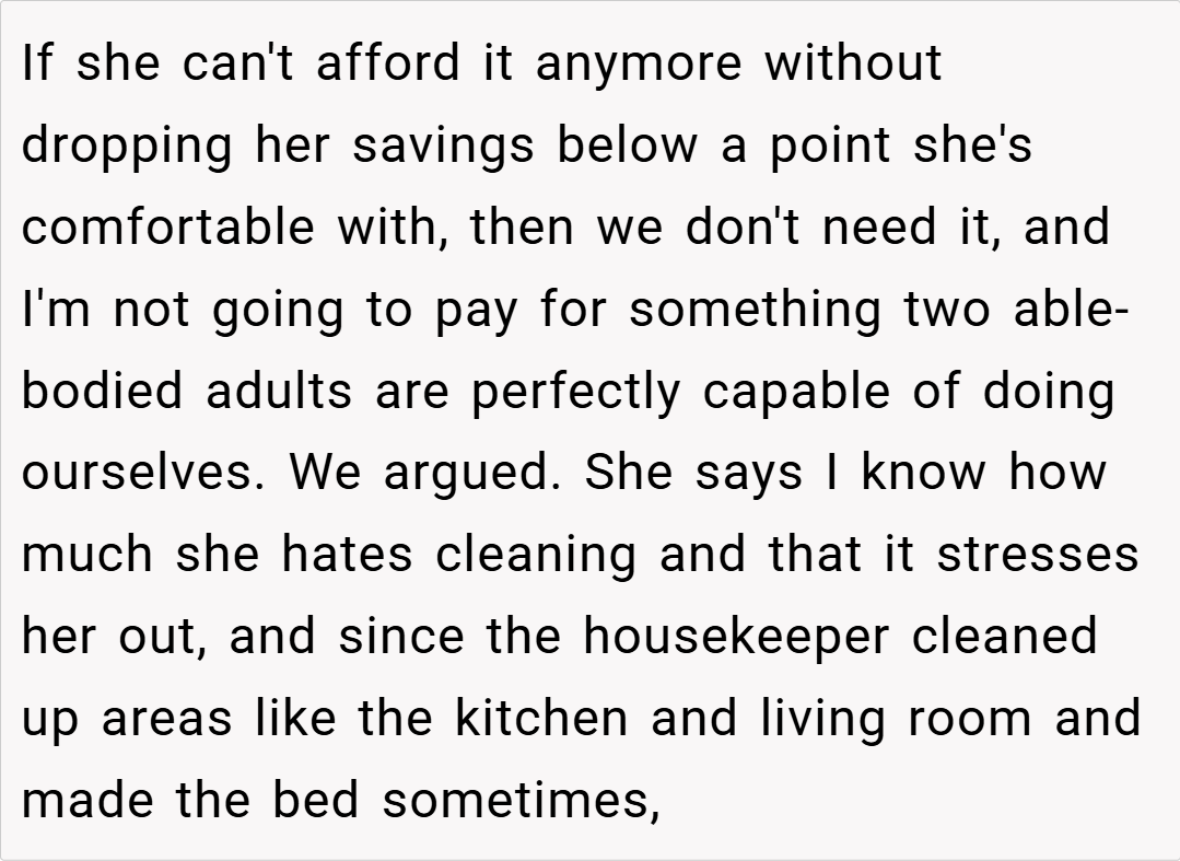 ‘AITA because I won’t pay to continue housekeeping services for my wife?’