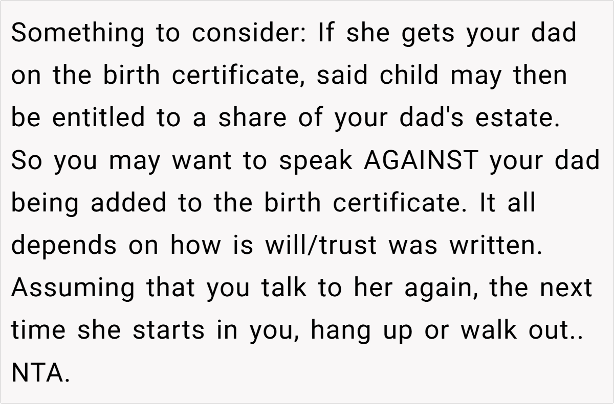 NTA, but lawyer up ASAP.. this needs to be sorted from Legal side. the inheritance and pretty much everything even SM plans to get a dead person on a birth certificate.