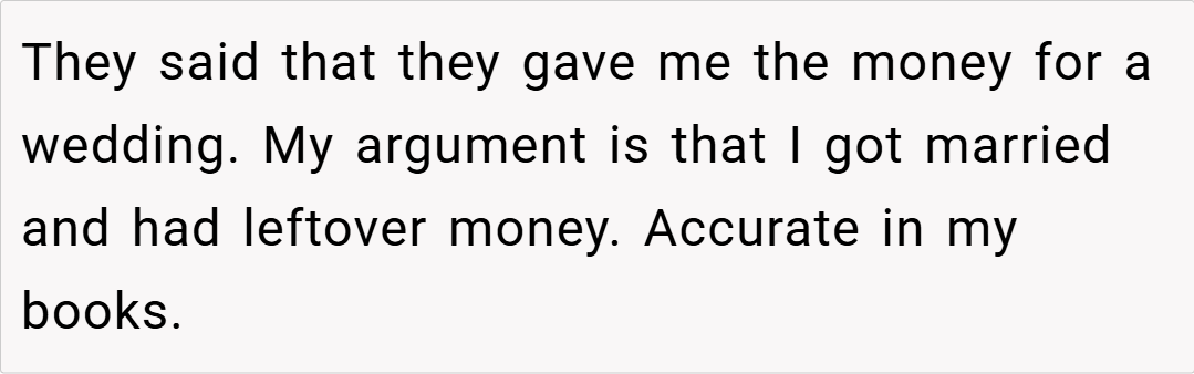 The key is communication—if the parents had been consulted or if expectations had been set earlier, there might have been less conflict. But ultimately, the decision should rest with the couple, and prioritizing financial security over a party is a legitimate choice.” (kidshealth.org) Both experts agree that while the emotional hurt felt by the parents is understandable, OP’s decision to use the money in a way that secures her family’s future is both financially and emotionally valid.