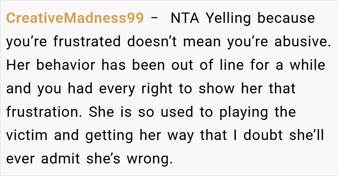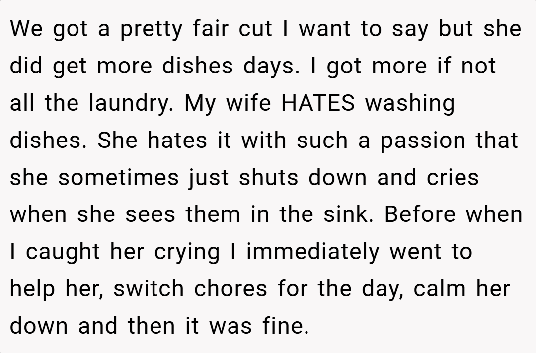 Many redditors sympathize with the OP’s exasperation, noting that if you’re repeatedly forced into doing more than your fair share, an outburst is understandable. “After months of handling extra chores, sometimes you just have to let them know it’s too much,” one commenter stated.