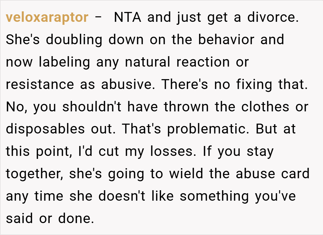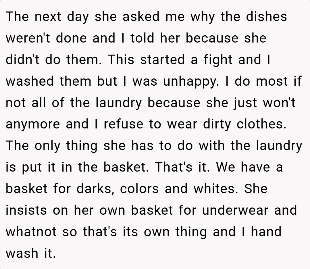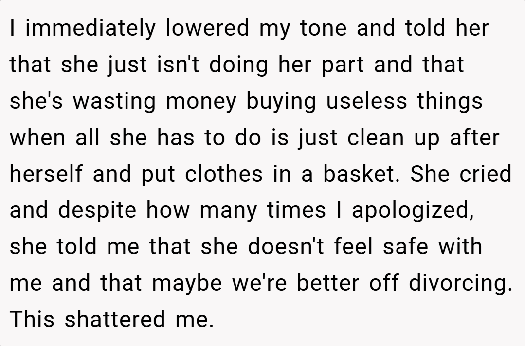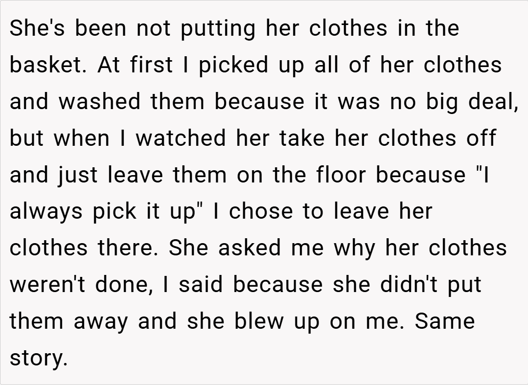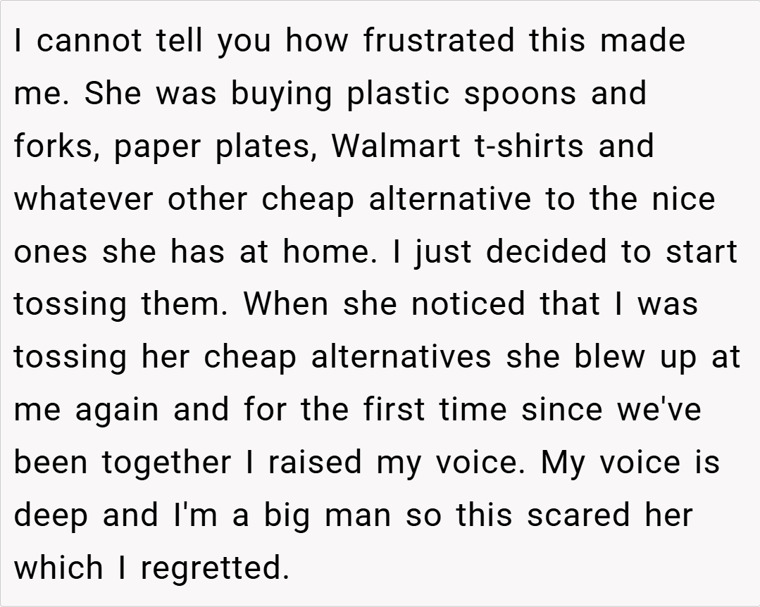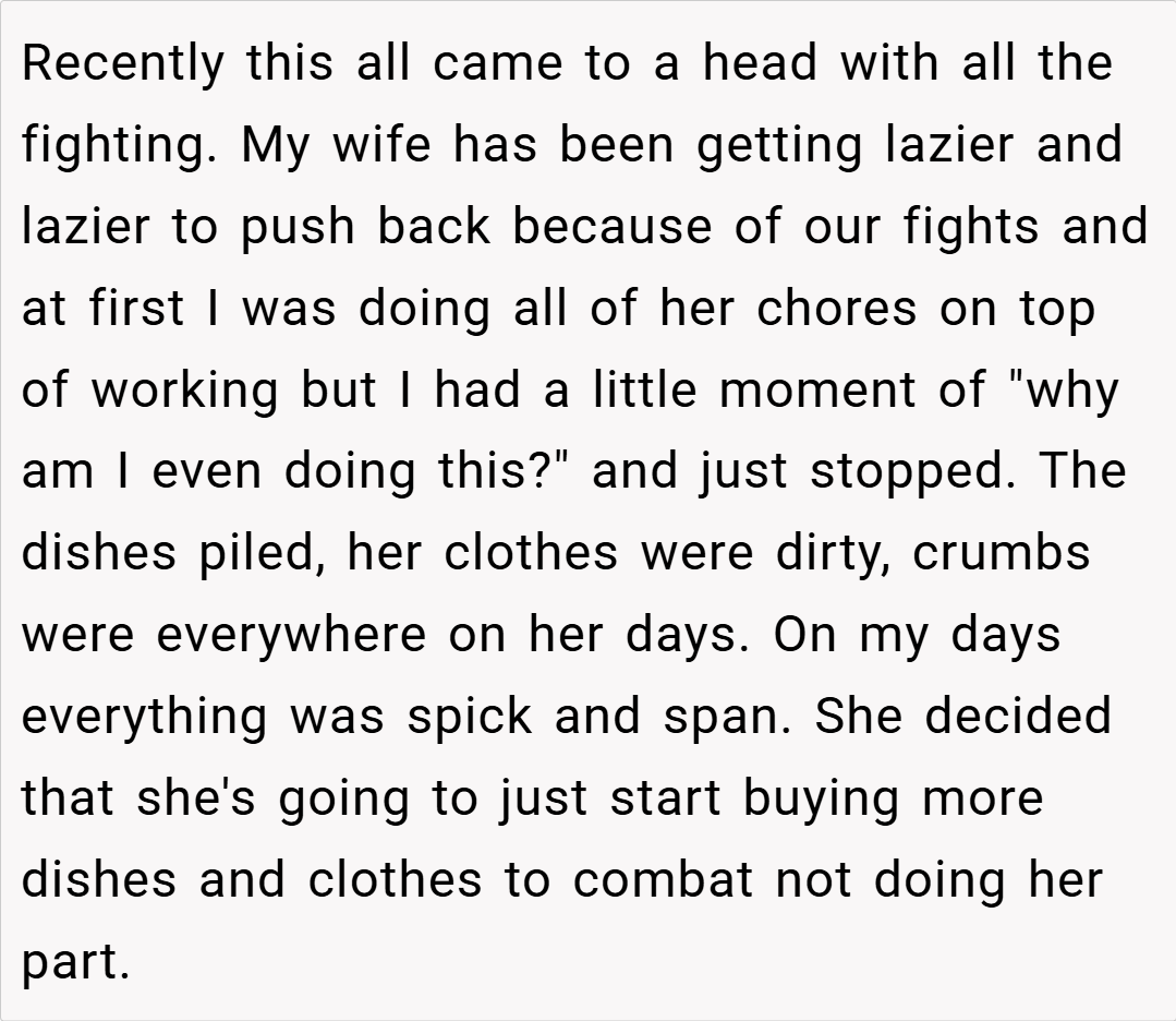 In the end, the OP’s decision to raise his voice and throw away his wife’s unused dishes and clothes was born from a long line of frustrations that had been building up over months. While some might say that there were better ways to address the issue, many understand that prolonged neglect of shared responsibilities can lead to a breaking point. Is it fair to let bottled-up frustration manifest in such a way, or should there always be a more measured response—even when you feel deeply disrespected?