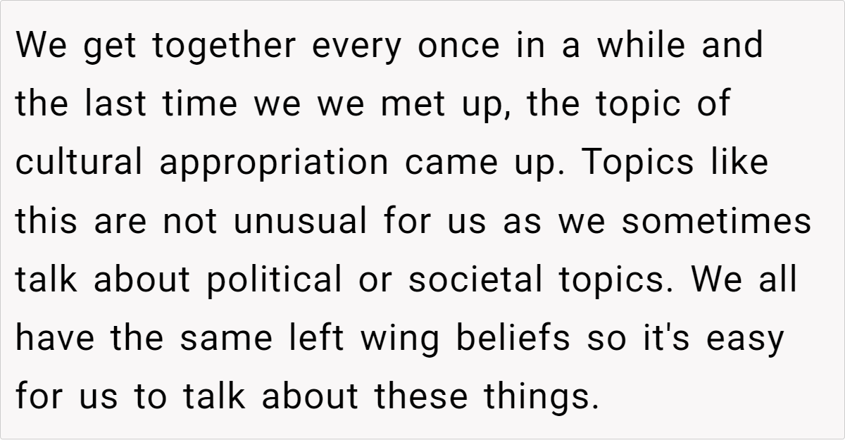 This story highlights the importance of open and respectful dialogue about cultural appropriation, avoiding generalizations and recognizing individual experiences. What are your thoughts on the friends’ accusations? Do you believe they had a valid point, or were their comments insensitive and misinformed? Share your perspectives and experiences in the comments below. This story serves as a reminder that conversations about race and culture require sensitivity, understanding, and a willingness to listen to diverse perspectives.