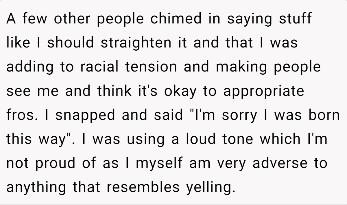 ‘AITA for angrily telling a I’m sorry I was born this way after she said my hair was cultural appropriation?’