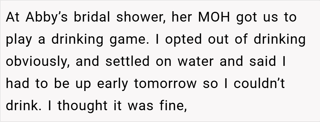Although she recently discovered she was pregnant—a fact she’d chosen to keep under wraps after a previous miscarriage—she never intended for her pregnancy to be announced at such an event. Yet, in the midst of a drinking game, a tipsy friend’s probing questions led to an unintended reveal that shifted the focus away from the bride-to-be.