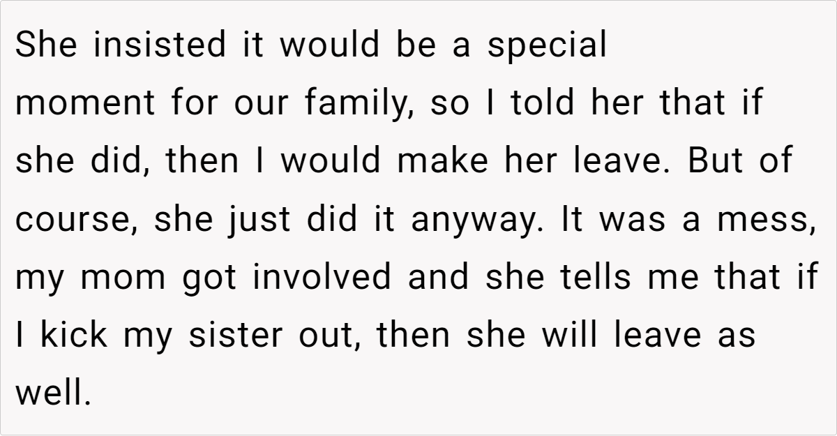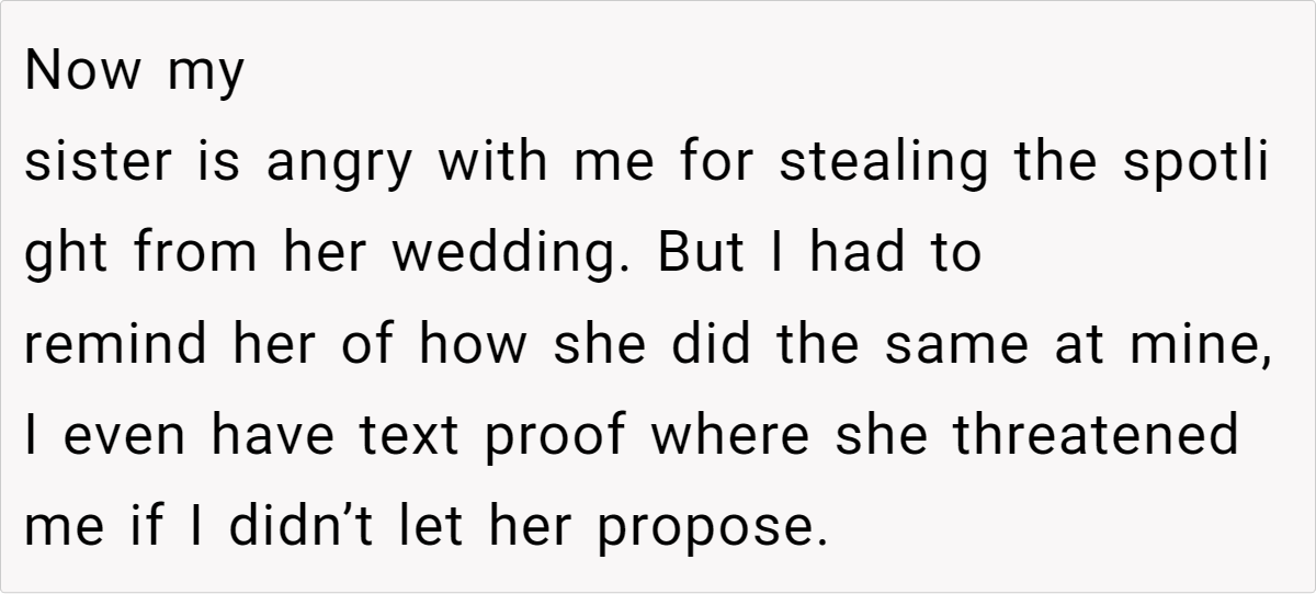 her sister and mother were furious, accusing her of stealing the spotlight. She reminded them of the earlier incident and even had text proof of her sister’s prior disrespect. read the original story below…