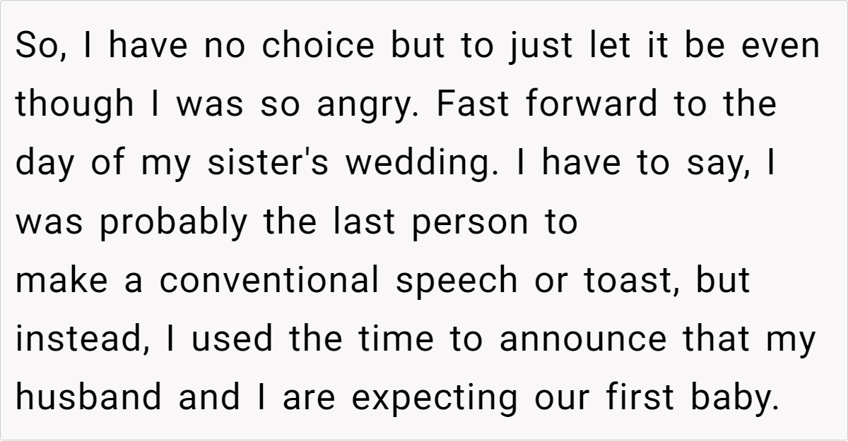 AITA for announcing my pregnancy at my sister’s wedding after she did the same at mine?