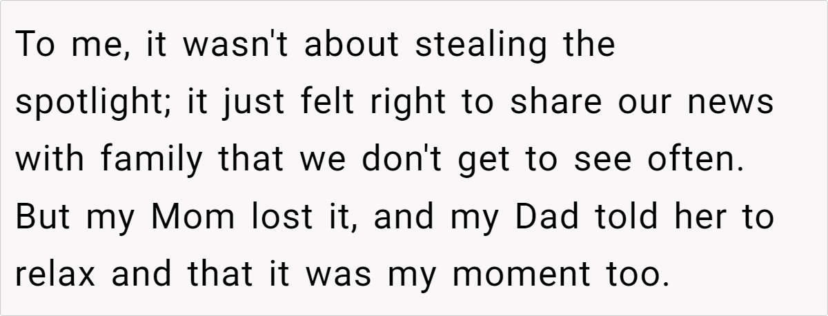 The decision to announce a pregnancy at such a significant family event raises important questions about communication and boundaries. Dr. Firestone explains that “clear communication about expectations is key in preventing these types of conflicts.” The storyteller’s claim that her sister previously disregarded her wishes at her wedding is a red flag.
