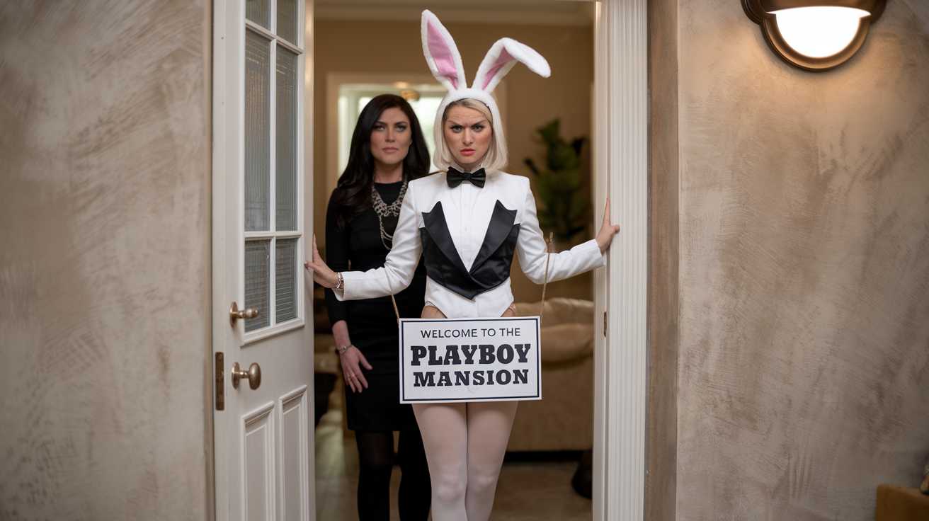 Then I put my phone on silent, which meant I didn’t see her next text that said she “knew her brother, he’ll find energy to say hi” When he got home, the moment he was sufficiently unpacked, I changed into a playboy bunny suit. Then his sister knocked on the door and yelled hello.