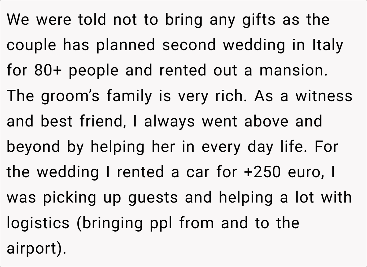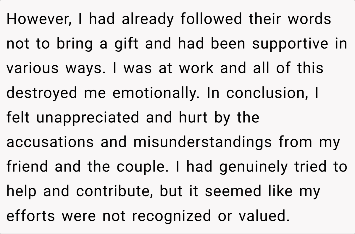 At the end of the day, being a supportive friend shouldn’t mean being taken advantage of. While the witness went above and beyond for a celebration, her genuine contributions ended up costing her both money and emotional peace. This story highlights a common dilemma: when does helping out cross the line into unfair financial burden?