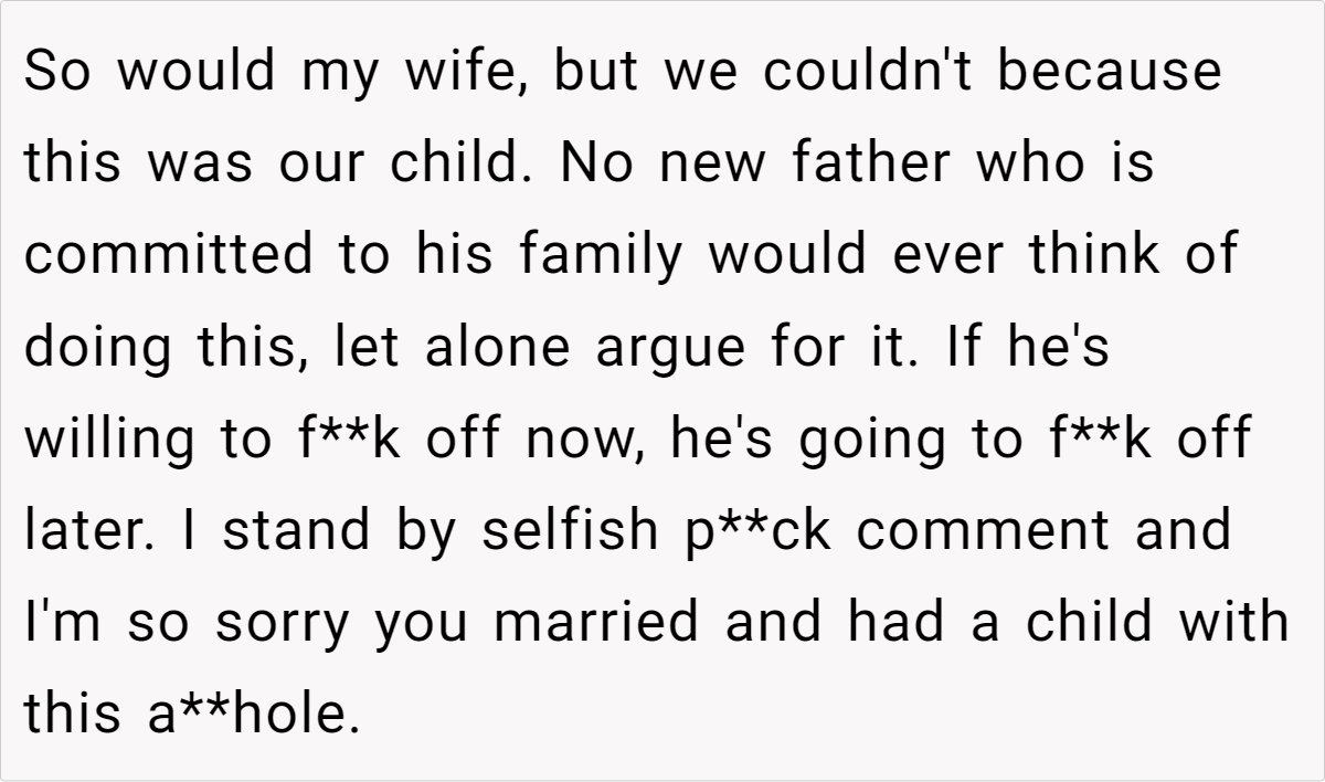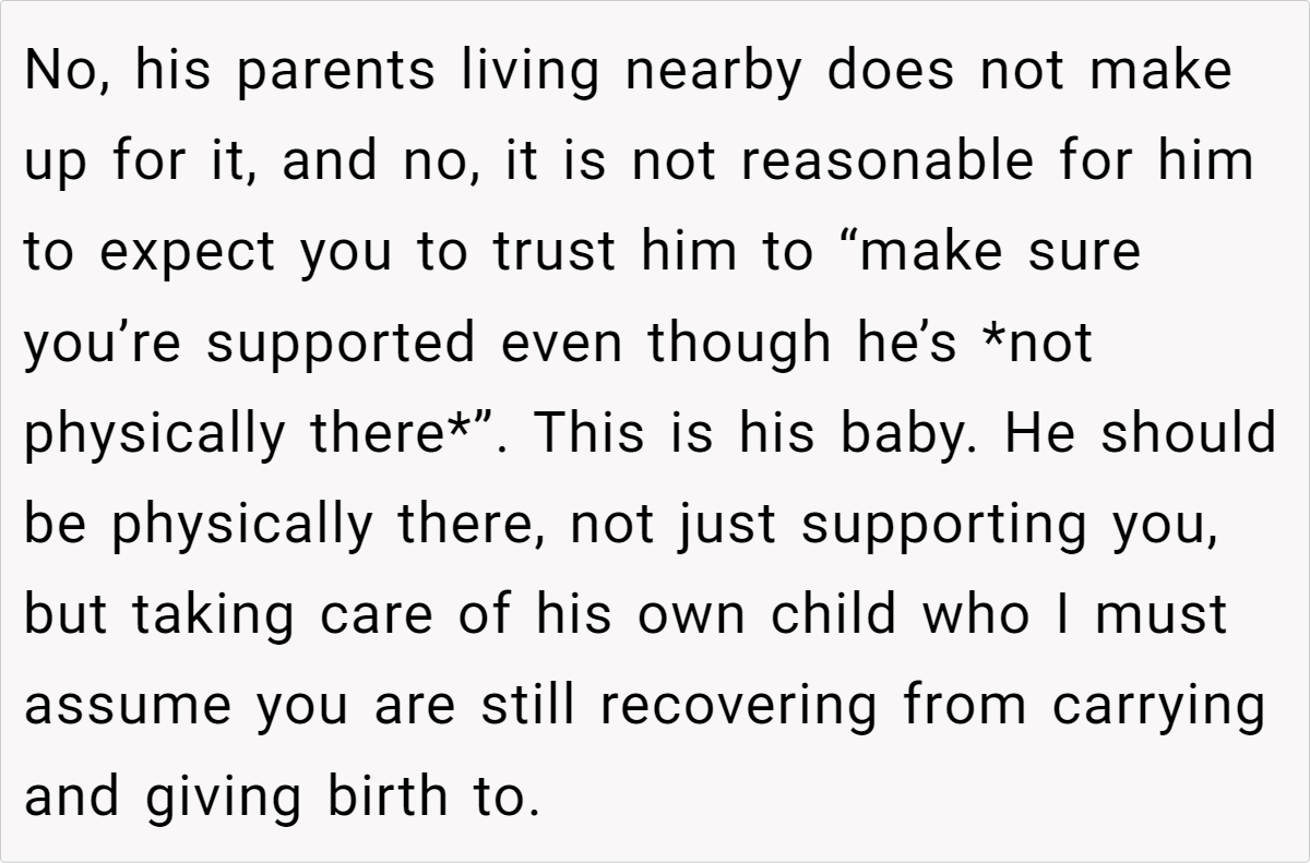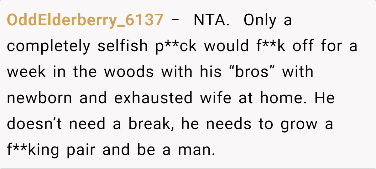 Here are some hot takes from the Reddit community—candid, raw, and laced with a touch of humor. The responses range from staunch support for the new mom’s stance to pointed critiques of any excuse for not being present during those crucial early days.