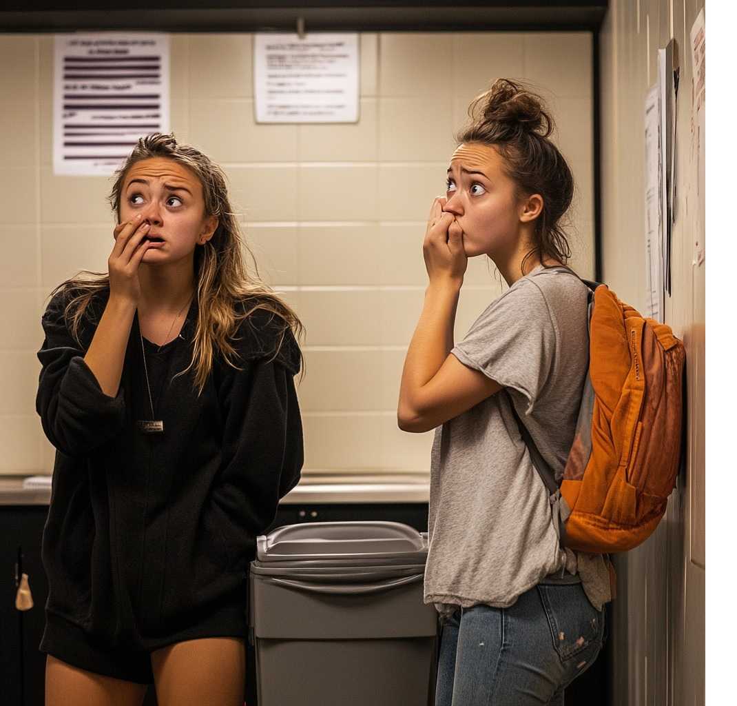 I now realize where the stench is coming from as my eyes fall onto the trash can underneath the sink that is completely overflown with brown and yellow stained toilet paper. I walk directly over to my roommate’s bedroom and confront her about this.