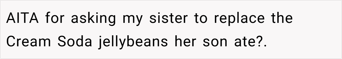 ‘ AITA for asking my sister to replace my jellybeans after her son ate them?’