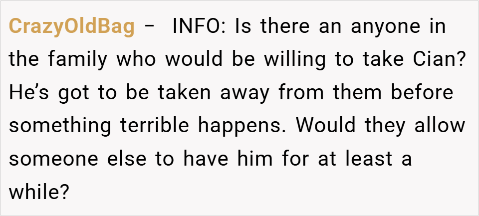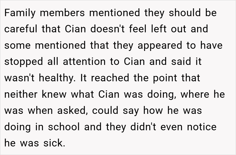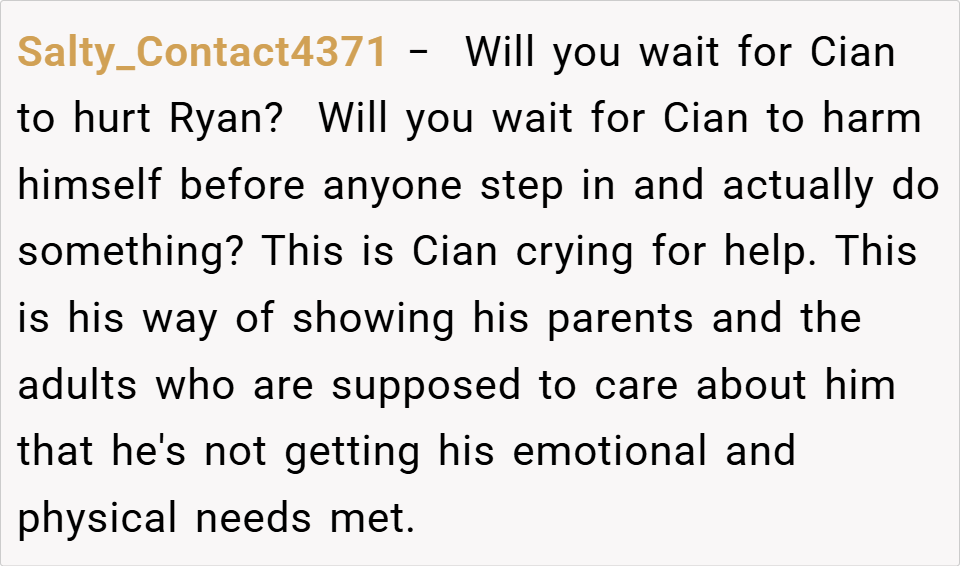 Critical Comments: Some argued that the writer’s approach was too harsh and that she should have offered support rather than criticism. However, most agreed that the parents’ neglect of Cian was the root cause of the problem.