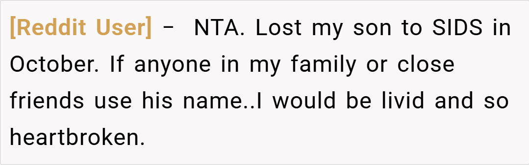 What do you think? Is it fair to protect a sacred memory by restricting a name, or should family members have the freedom to choose names regardless of past loss? Share your thoughts and experiences in the comments below—how would you navigate this emotionally charged situation?