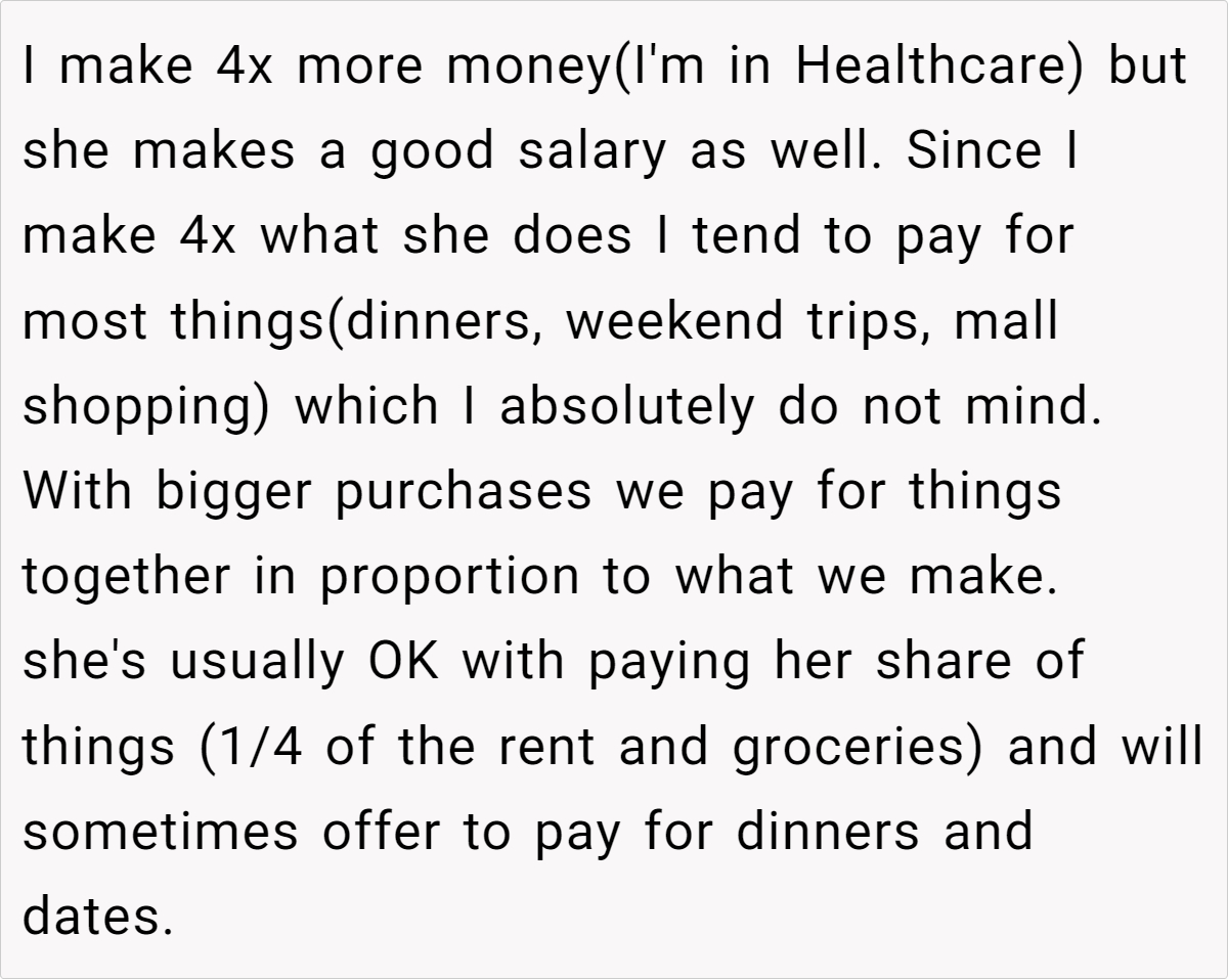 Furthermore, focusing on “you make more, so you should pay more” can erode the sense of partnership. Marriage experts emphasize that healthy couples often view big-ticket purchases through a lens of mutual benefit. The husband’s request—asking her to put in her fair share—mirrors that principle.