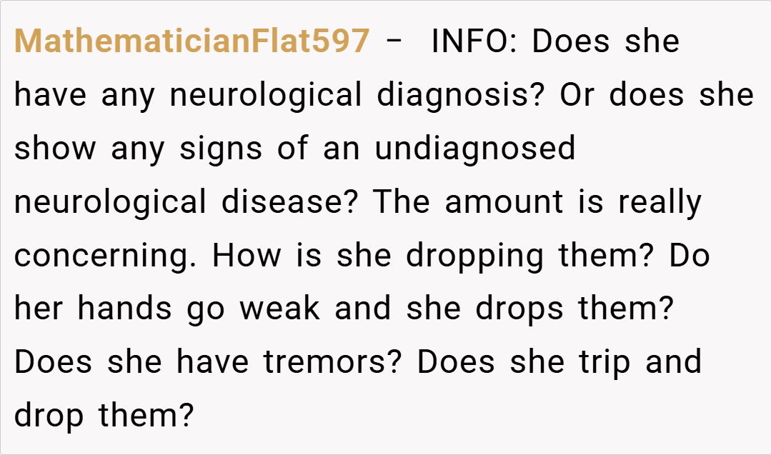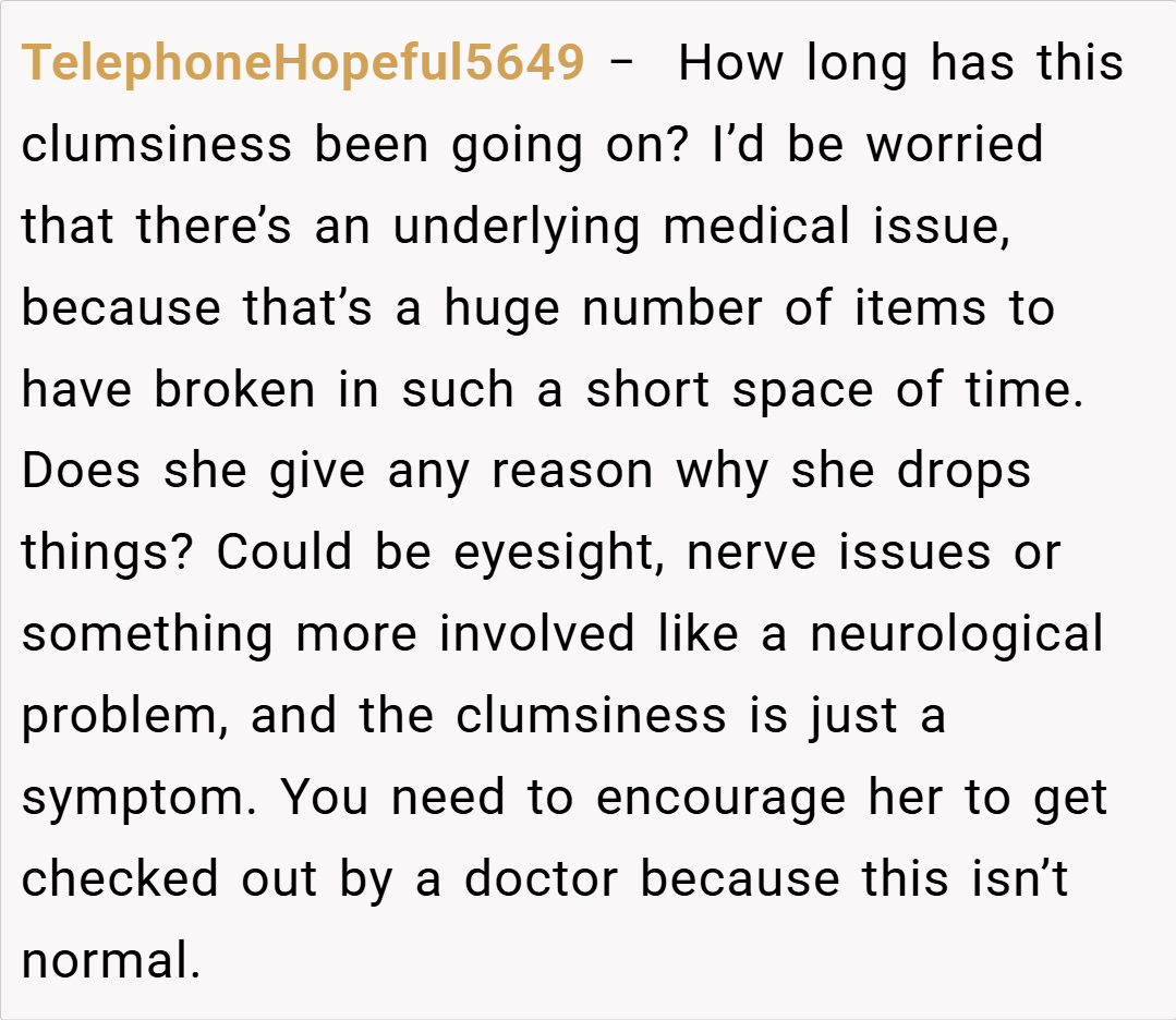 The girl’s clumsiness – breaking three glasses, a vase, two bowls, a coffee cup and a plate in just one week – is no longer just a casual carelessness but could be a sign of an underlying health problem.