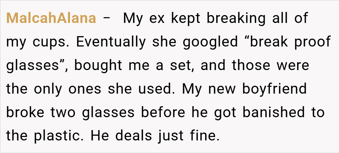 ‘AITA for banning my GF from using glass cups when she is over my house?’