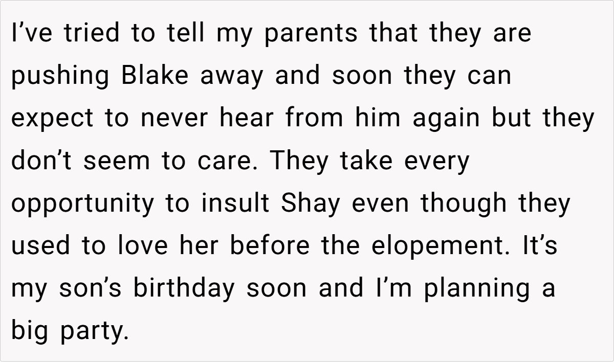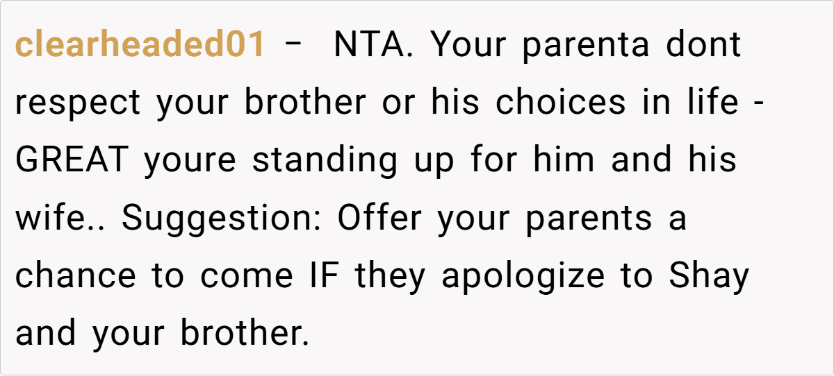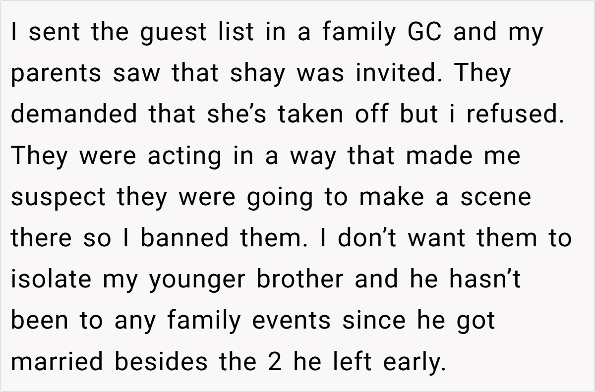 ‘AITA for banning my parents from a family event because they don’t like my brother’s wife?’